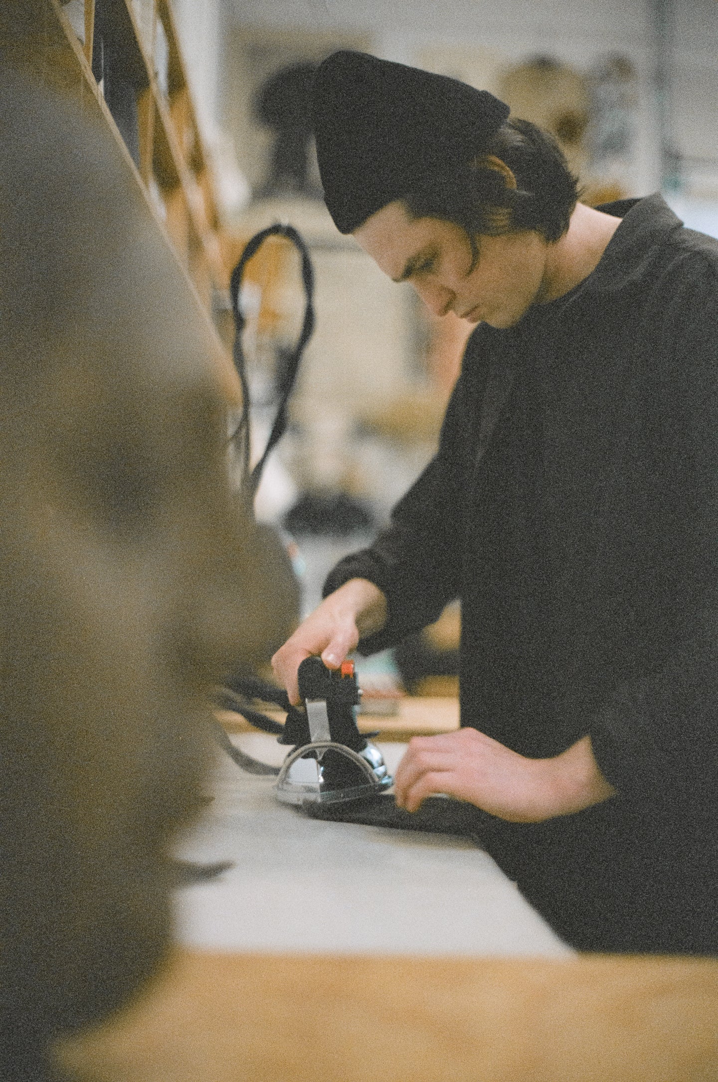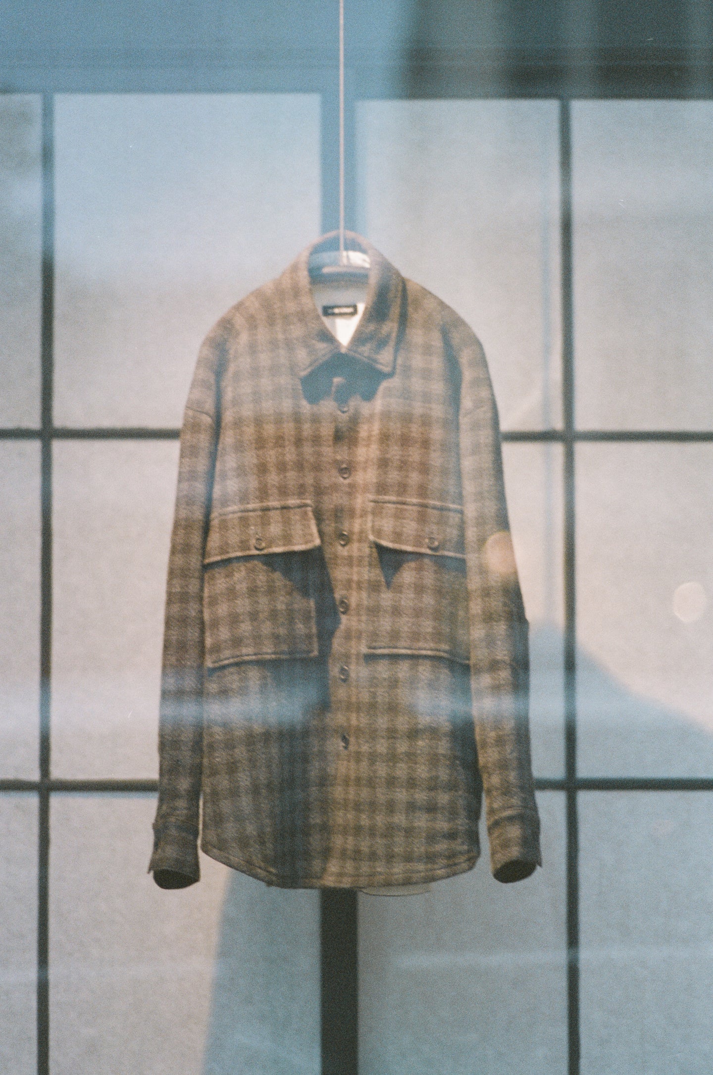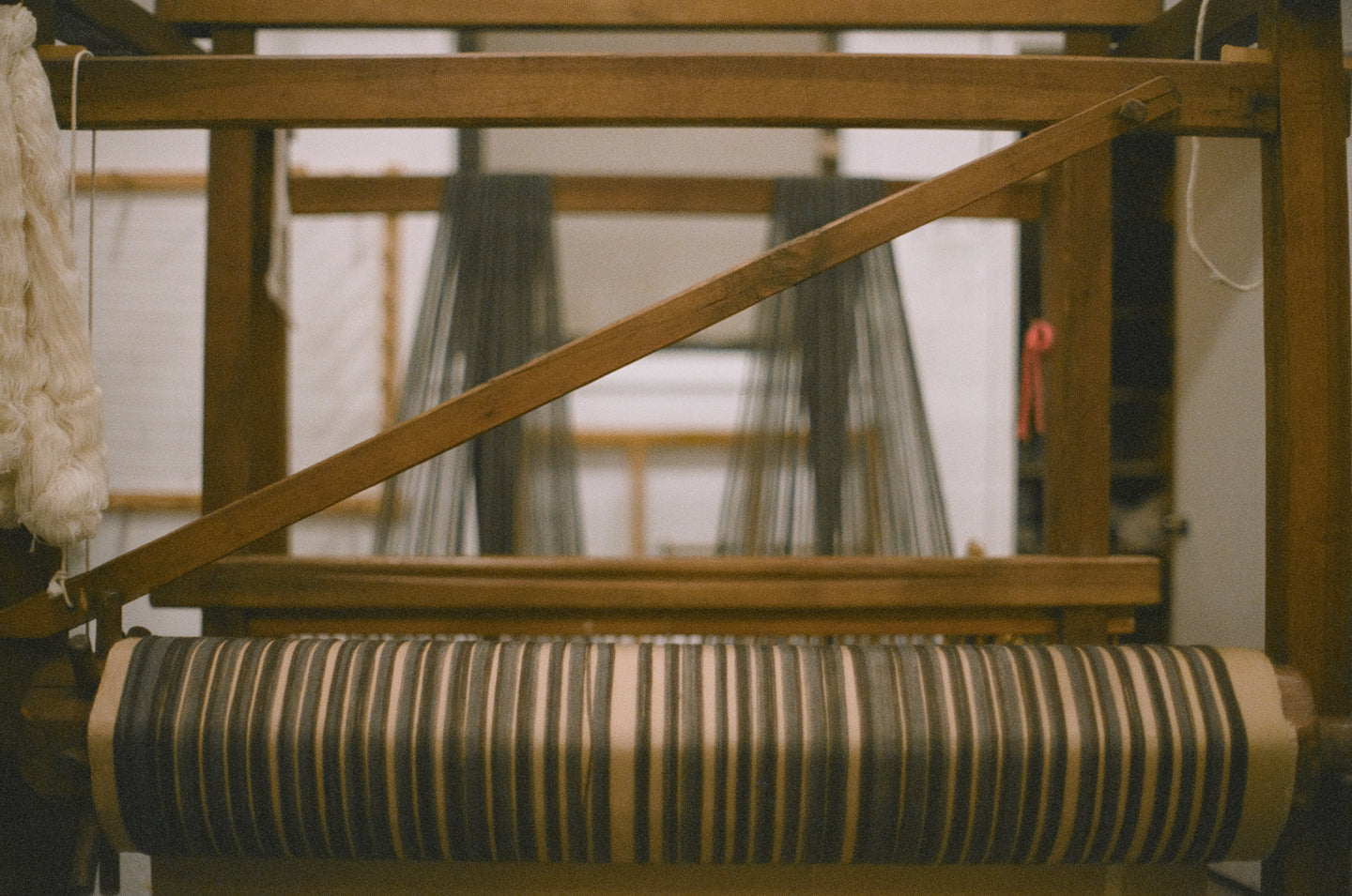 Continuing the collaboration with Marina Contro - the handweaver, teacher & artist who shares our studio space in San Francisco - this winter we worked together on a second iteration of the handwoven shirt project we did in 2021. Using the same undyed ramboulliet wool from Northern California - this time weaving a fine single ply yarn in two different natural shades of brown and charcoal to create a subtle check pattern, slightly lighter weight than the previous edition.