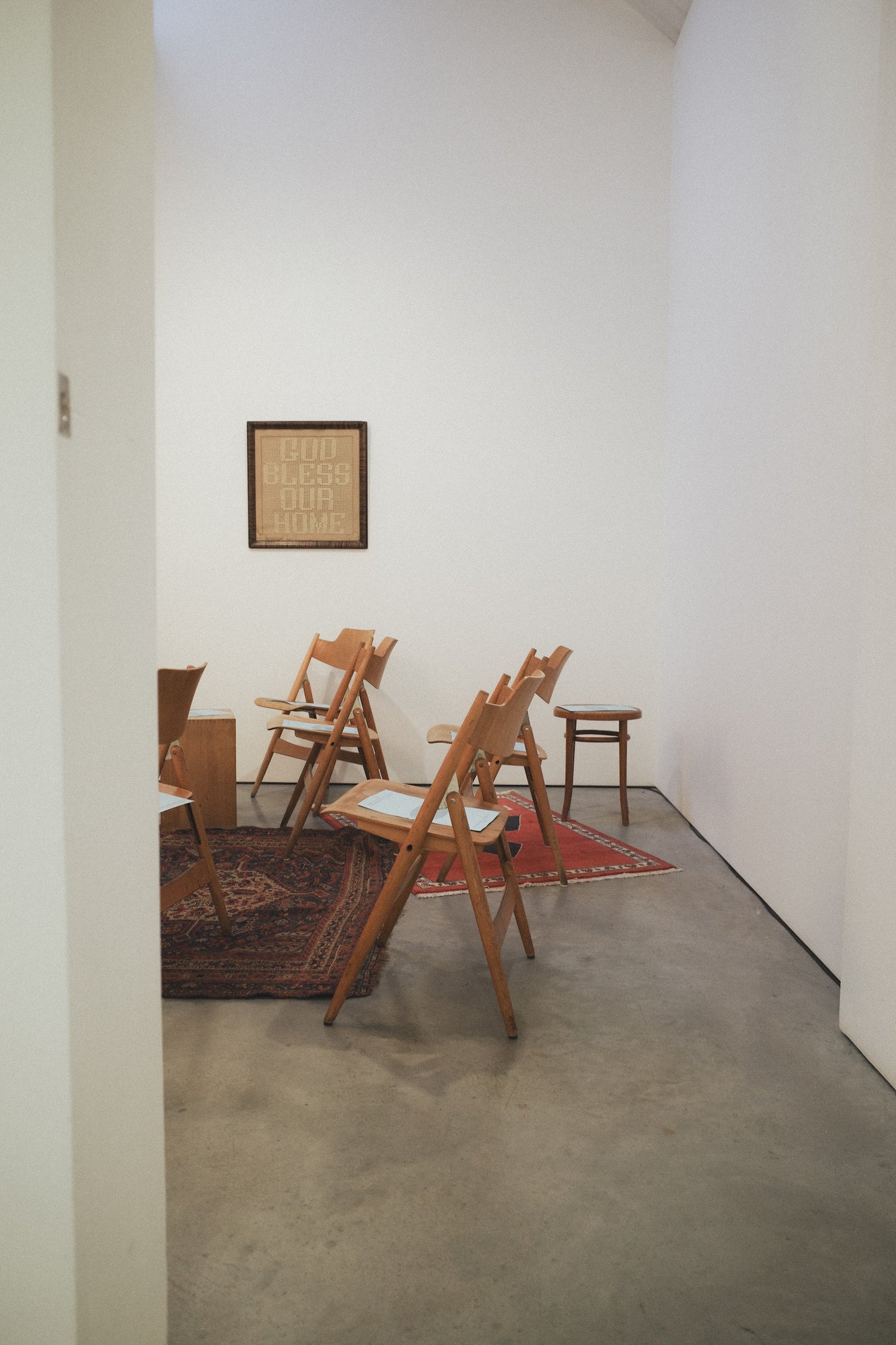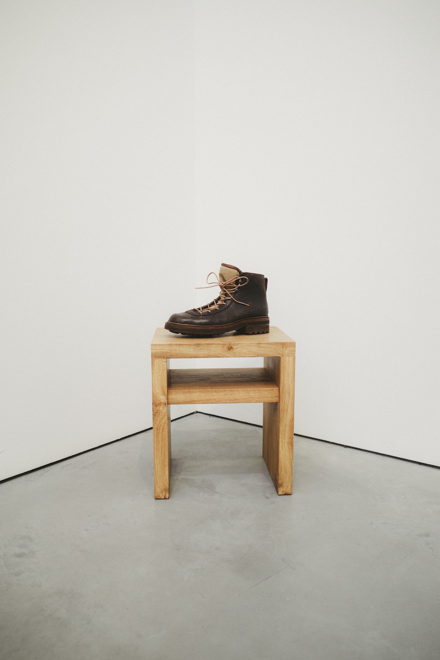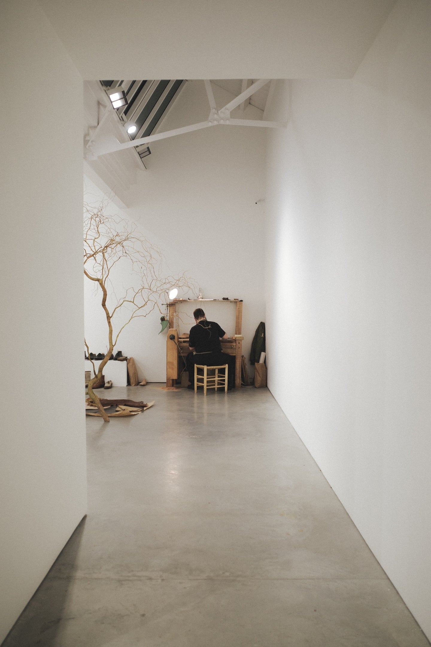For ten days in December, exhibition three took place at Stuart Shave Modern Art gallery in London. The exhibition brought together a collection of garments and furniture entirely made in England, a collaboration with London-based bespoke shoemaker Sebastian Tarek, and an immersive mid-century HiFi lecture by Peter Kapos of Das Programm/System Studios.
