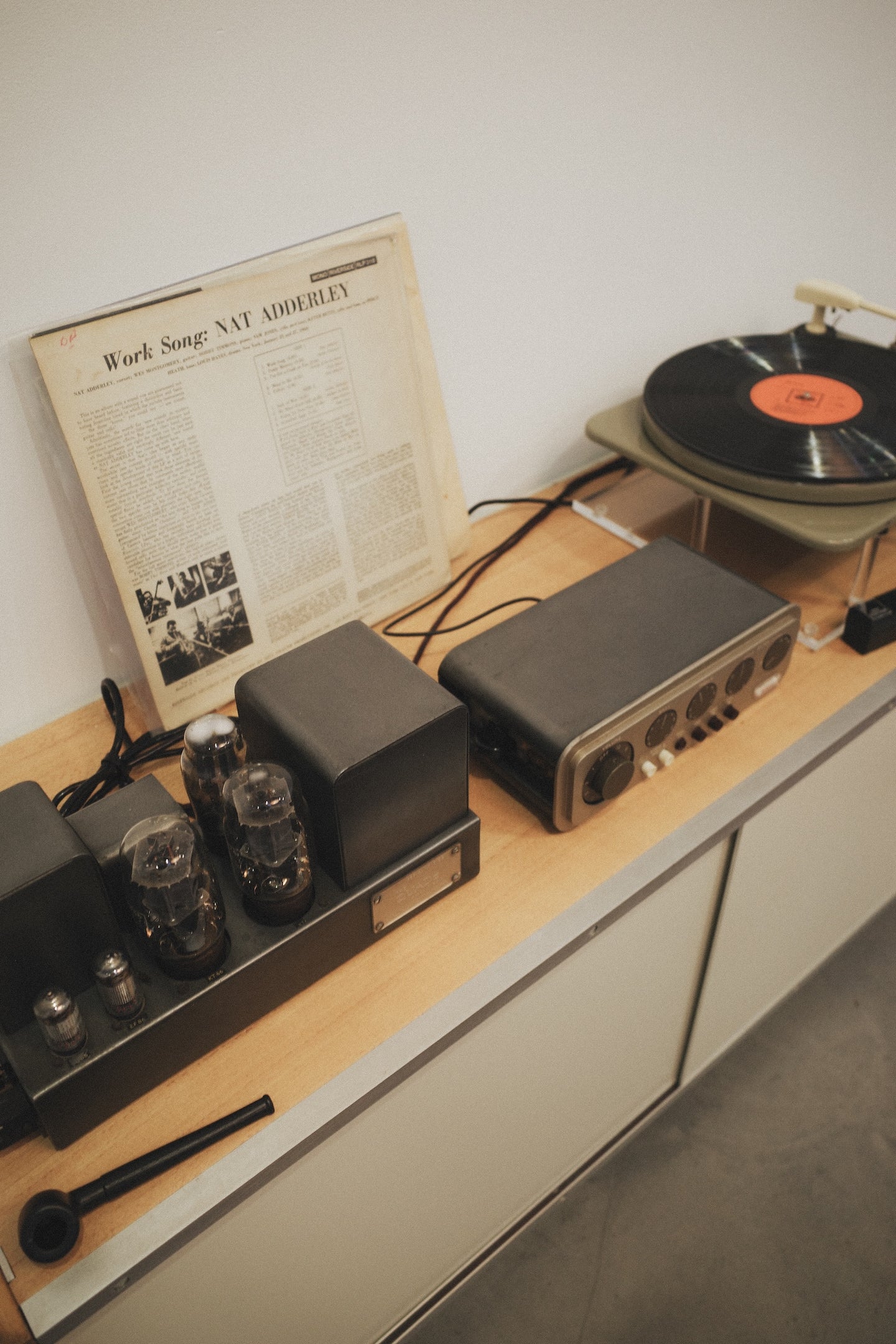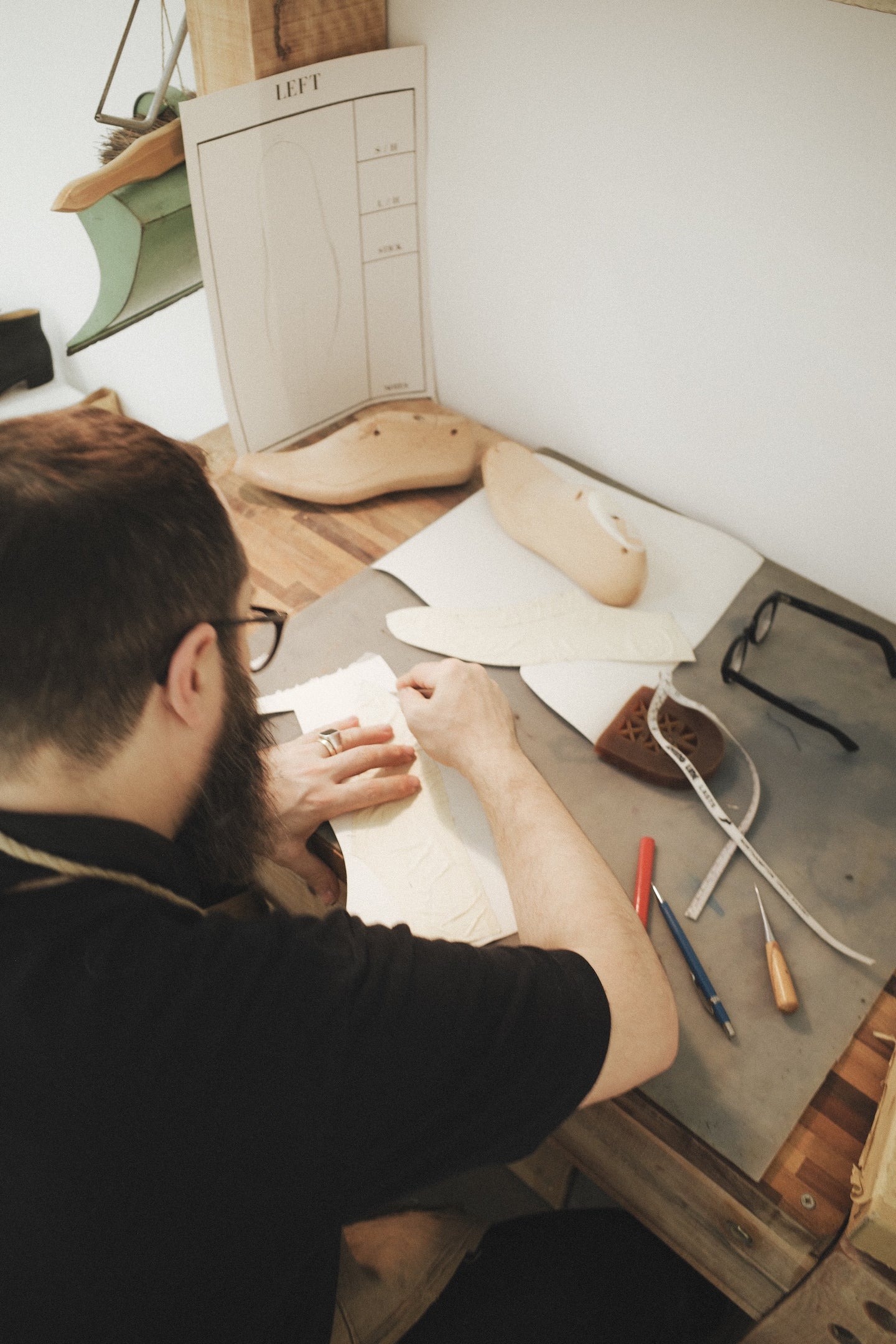 The space was open daily - visitors could see Tarek crafting a pair of the collaborative shoes on site throughout the week, amidst a special installation by florist Amber Luu. On December 9th, there was a live performance by London’s experimental jazz trio Flur (which you can listen to here). On weekends, Peter Kapos offered visitors a unique lecture experience - recorded on vinyl and played on a mid-Century HiFi system, accompanied by a slideshow projected on vintage equipment collected by Kapos.