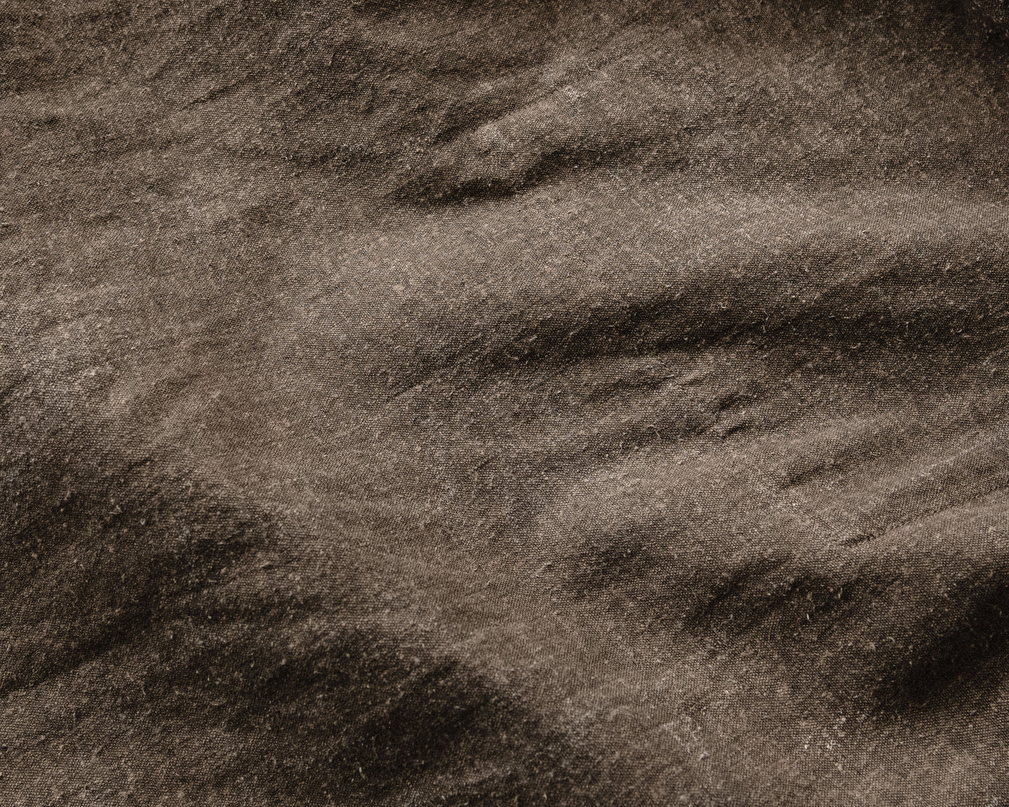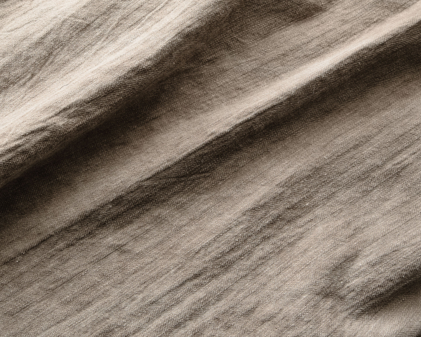 description: soft and unstructured, this very lightweight all hemp twill weave, was overdyed twice - first with an Oekotex beige color for a warm base, then a second time in natural sumi ink for overtones of charcoal and the introduction of irregularity in saturation. woven and dyed in Japan.