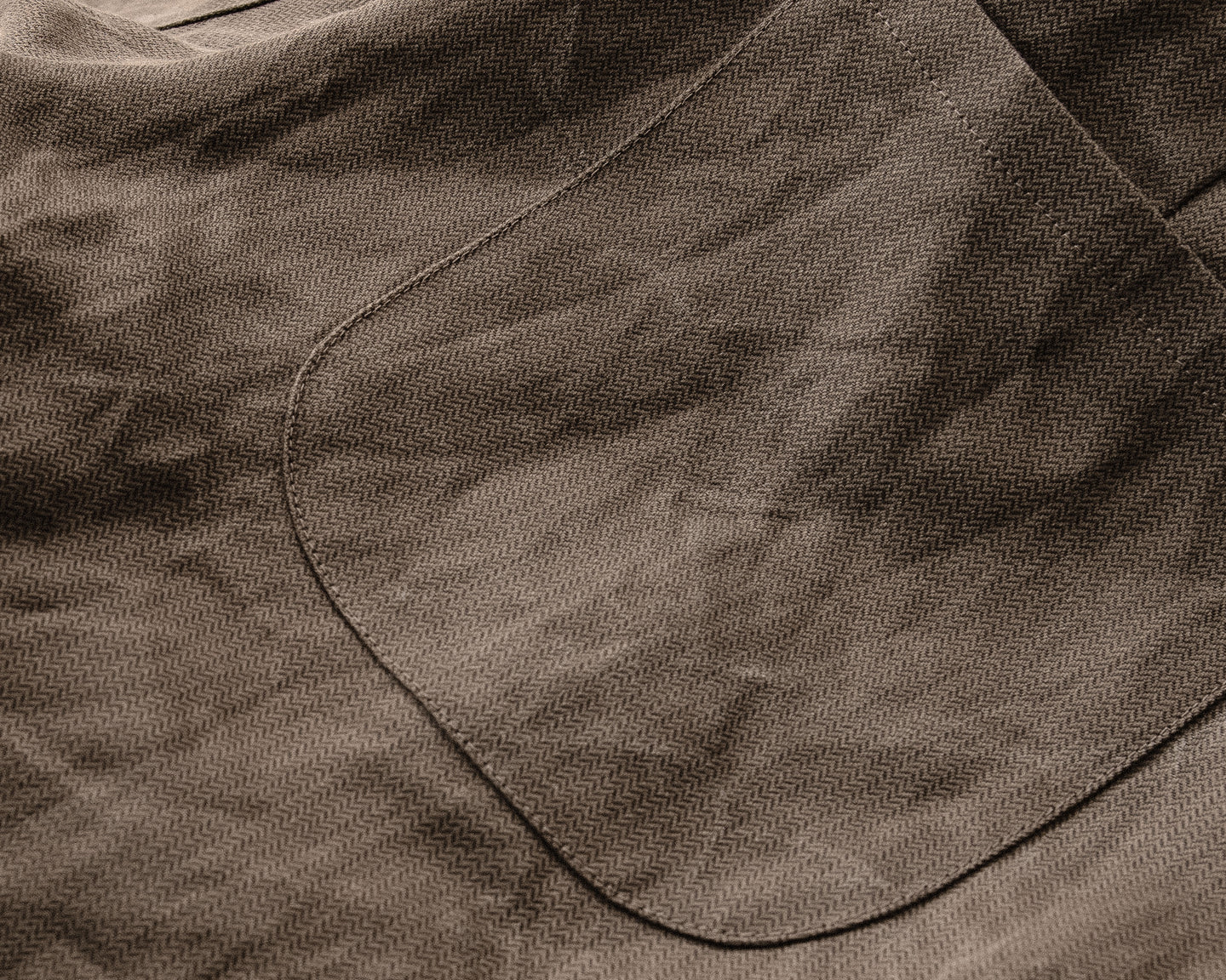 description: medium weight structured herringbone cloth, blending washi and cotton for a soft hand while retaining breathability and a dry crinkled texture. overdyed with natural kakishibu (fermented persimmon/iron mixture) for a warm grey tone that will darken when exposed to sunlight. woven in Japan.