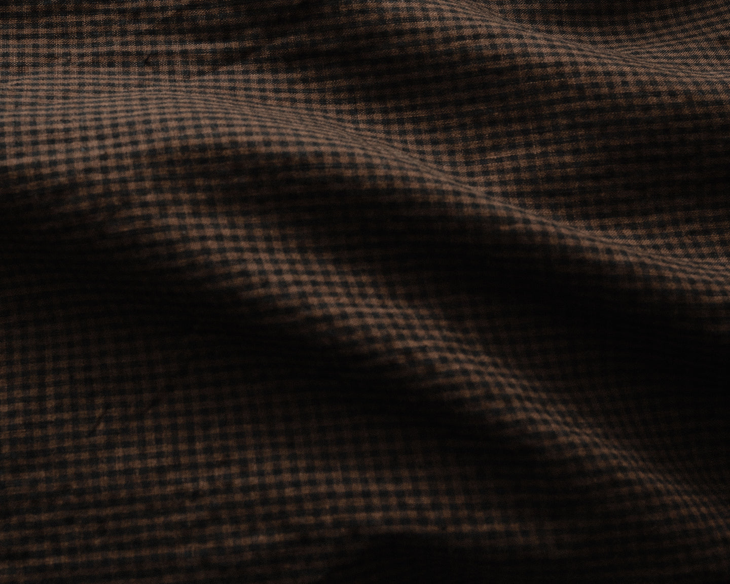 description: very lightweight, breathable shirting cloth ideal for warmer temperatures. features a subtle grid structure created by alternating brown and navy dyed yarns. woven in Shizuoka, Japan.