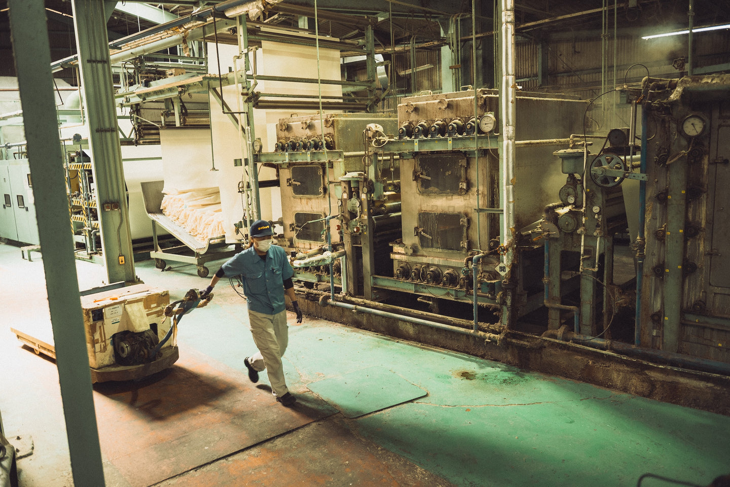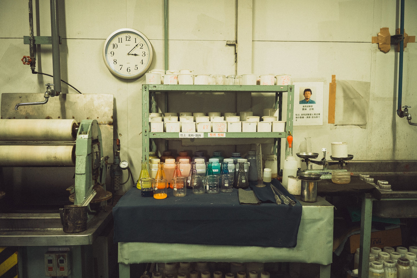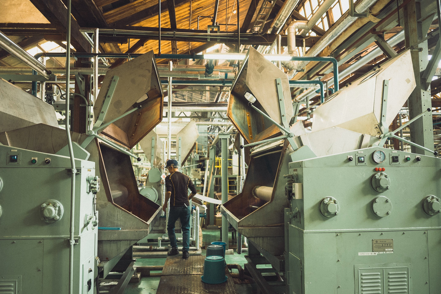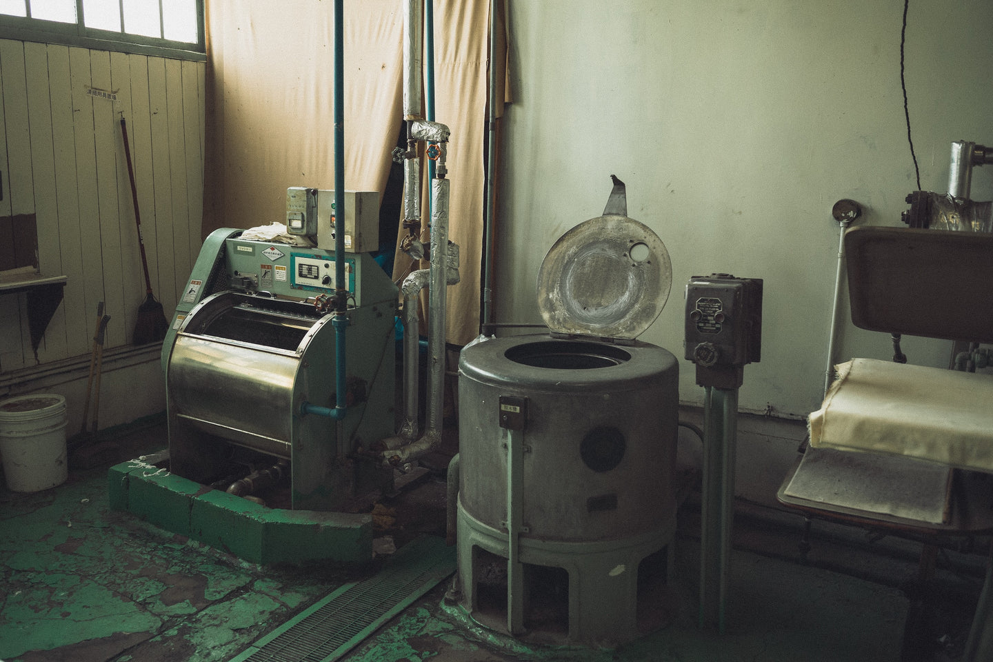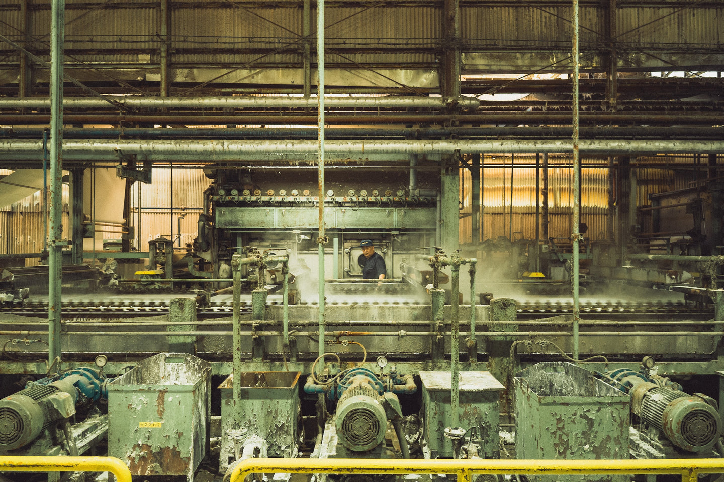 An unassuming cluster of warehouse structures conceals a mysterious world of color alchemy and idiosyncratic machinery. The immense scale of space and hyper specific decades old equipment exhibiting the heavy patina of time impart a Jules Verne-like quality to the humble spaces.
