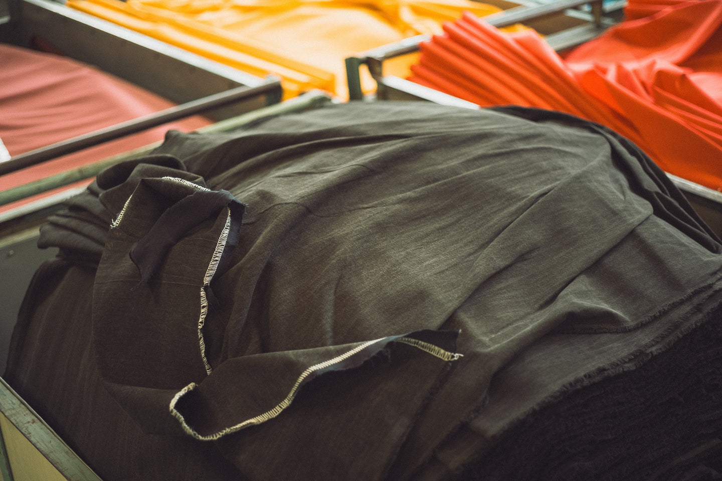 Nestled into the banks of the Asahi River that runs through Okayama, this larger scale dye house specializes in one discipline; piece dyeing, or the dyeing of fabric after it's woven.
