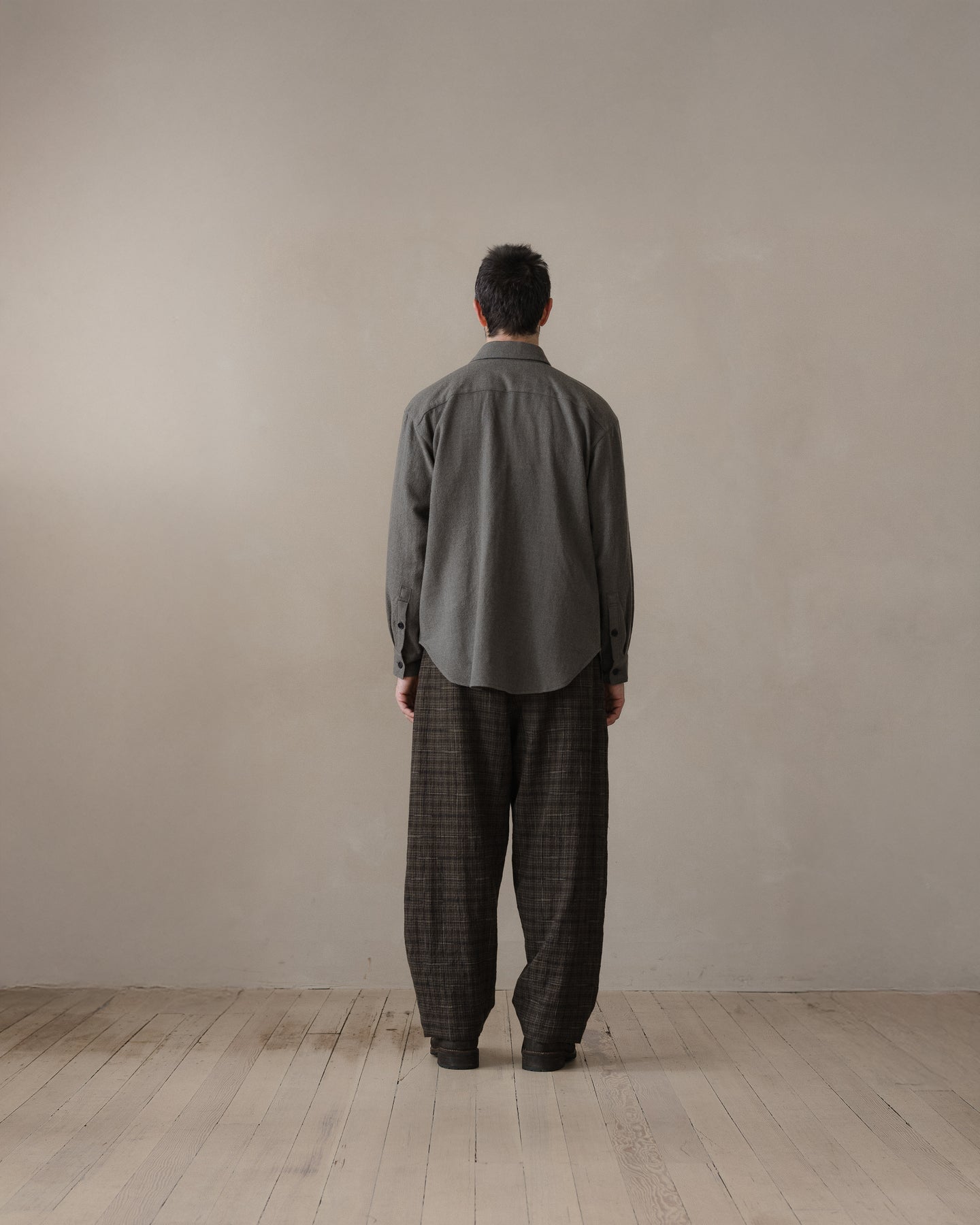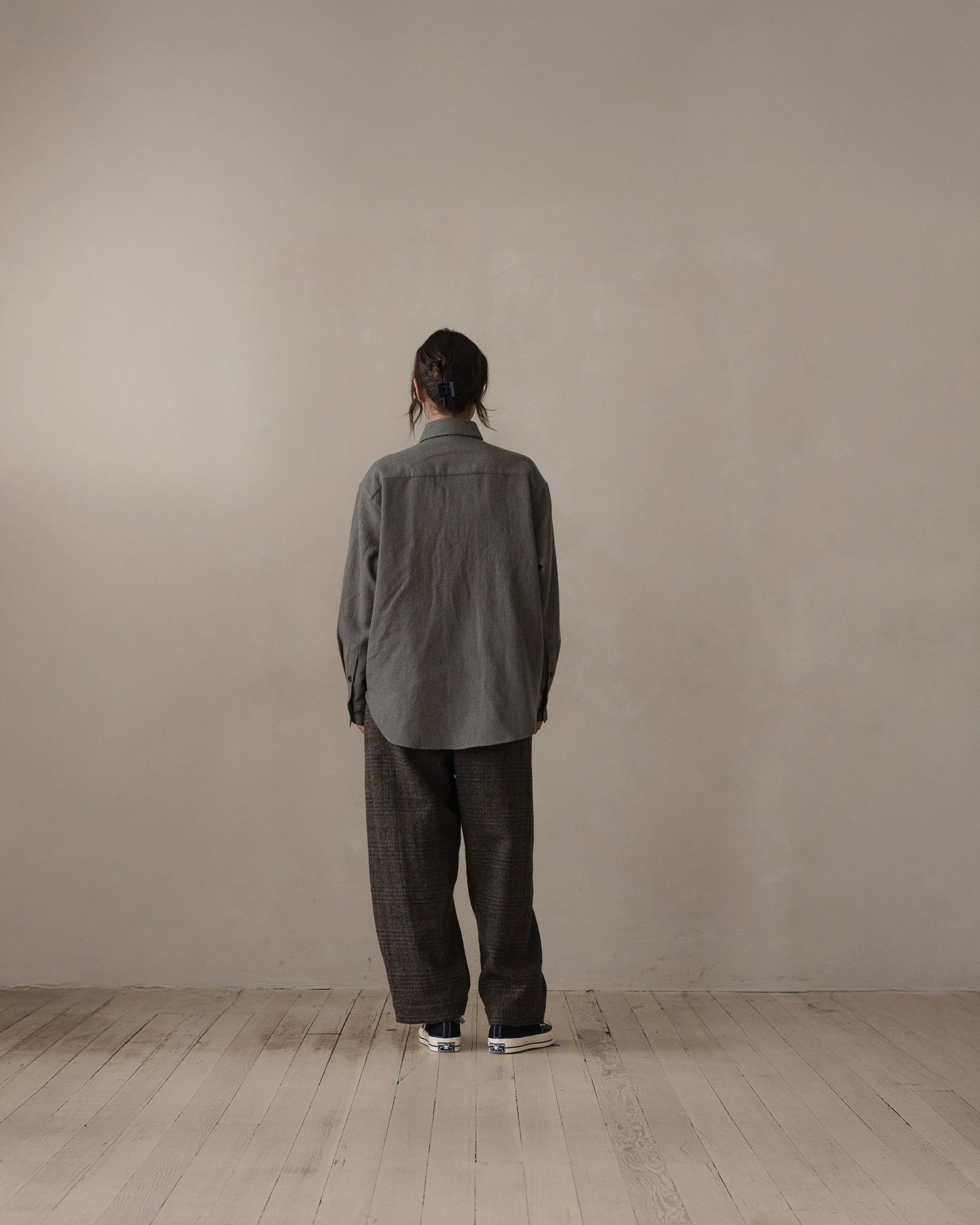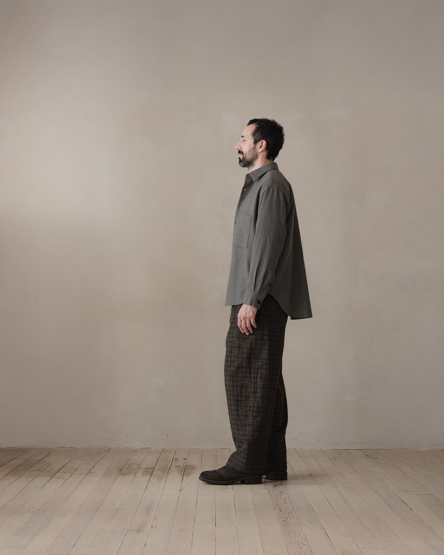 A looser fitting buttondown with single chest pocket, corozo buttons, french seams, squared cuffs, pointed collar, more pronounced curved hem and ‘invisible’ placket. This shirt is based on the same fit of the Big Shirt - cut more relaxed in the chest with a dropped shoulder and a slightly longer body compared to the Two Pocket Shirt.