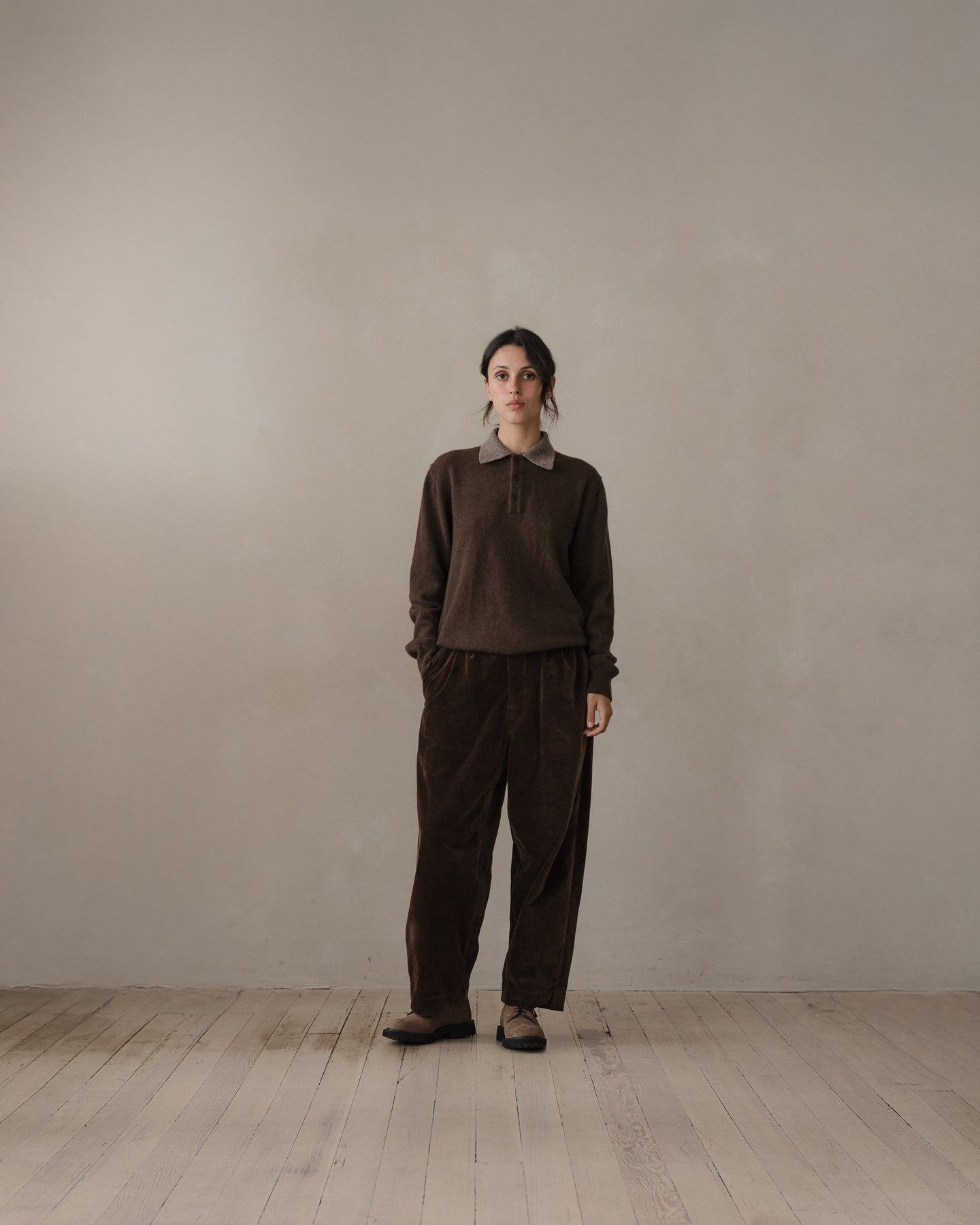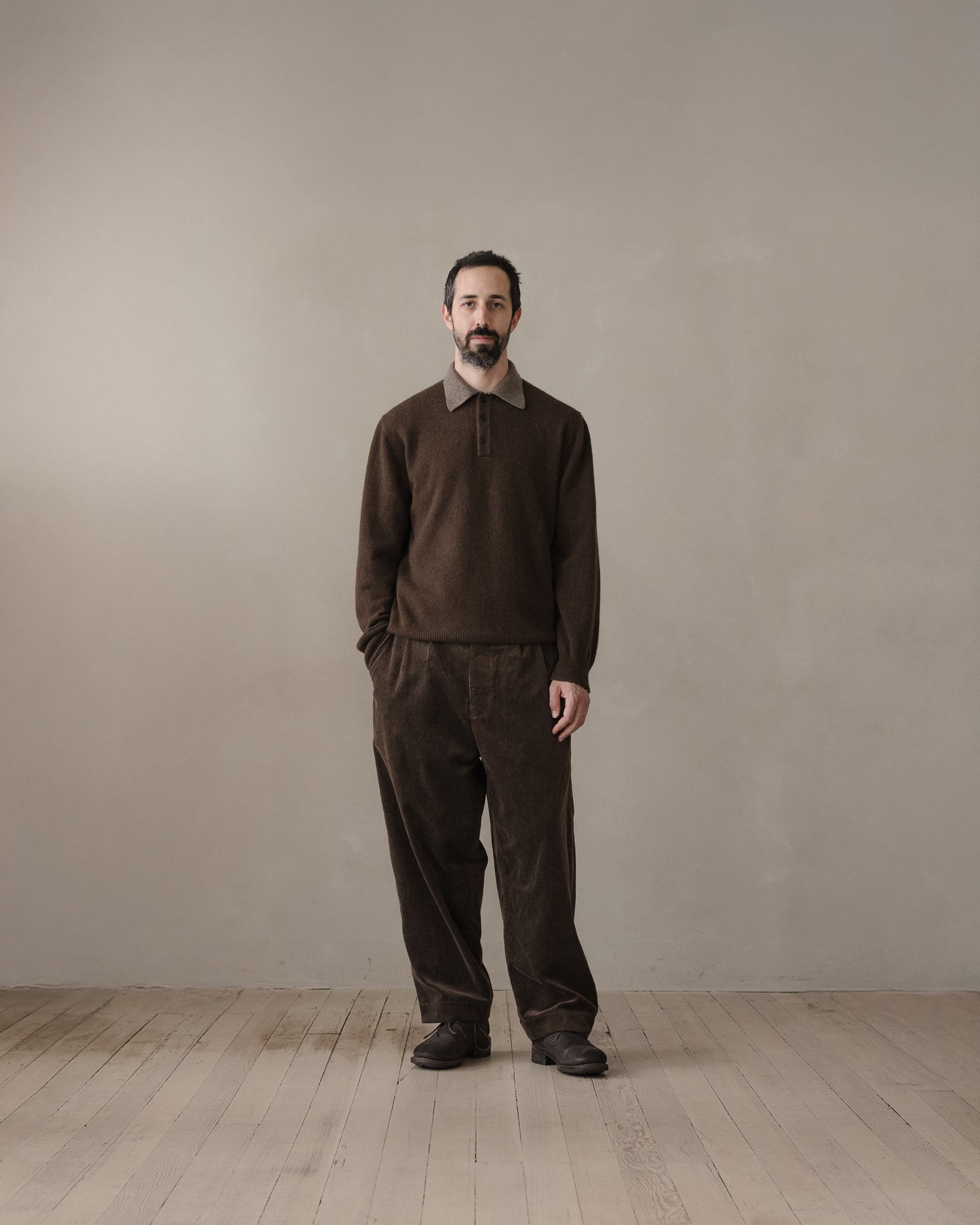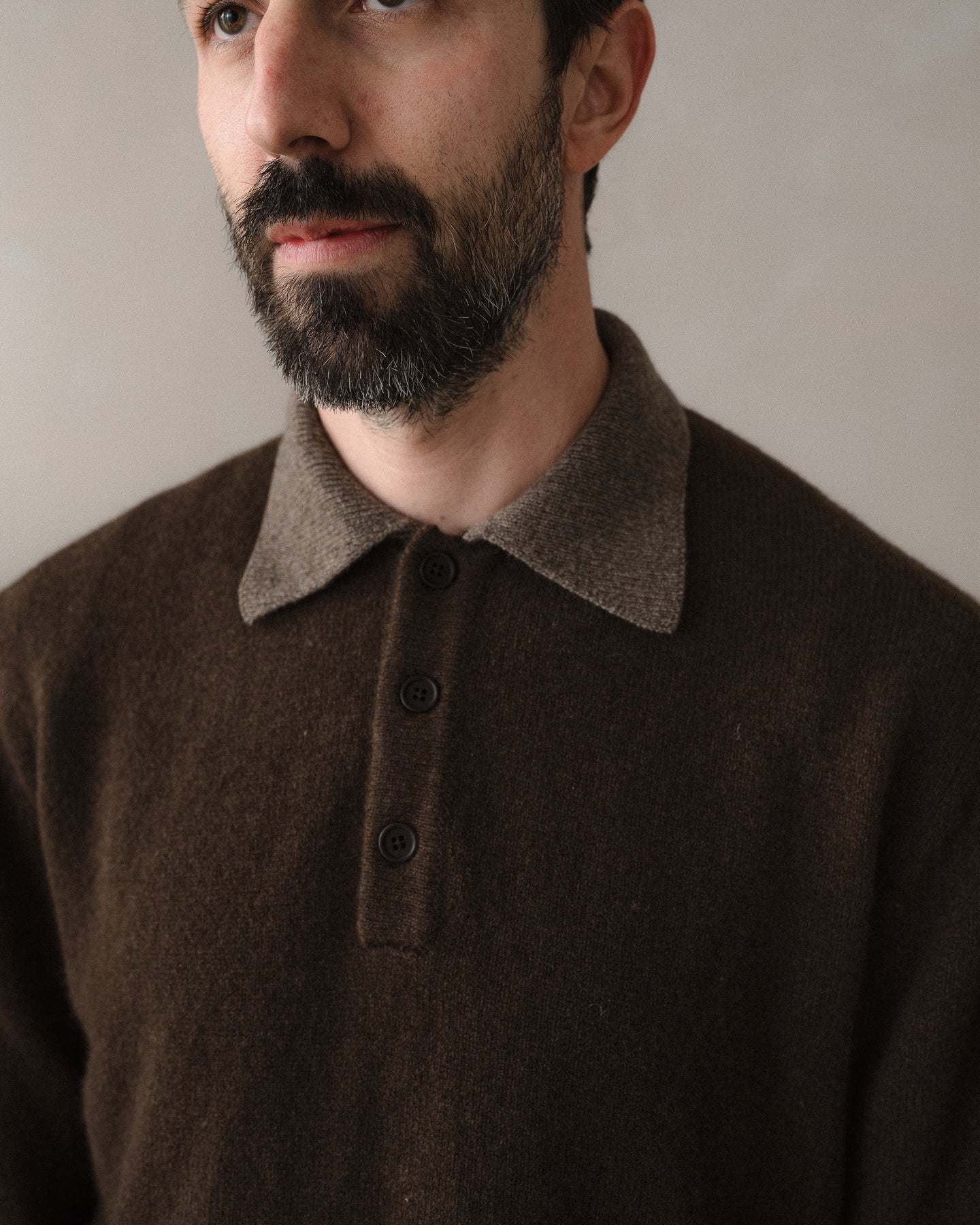The fit is similar to the Crewneck Sweater but a bit slimmer in the body and sleeves with a quarter placket.