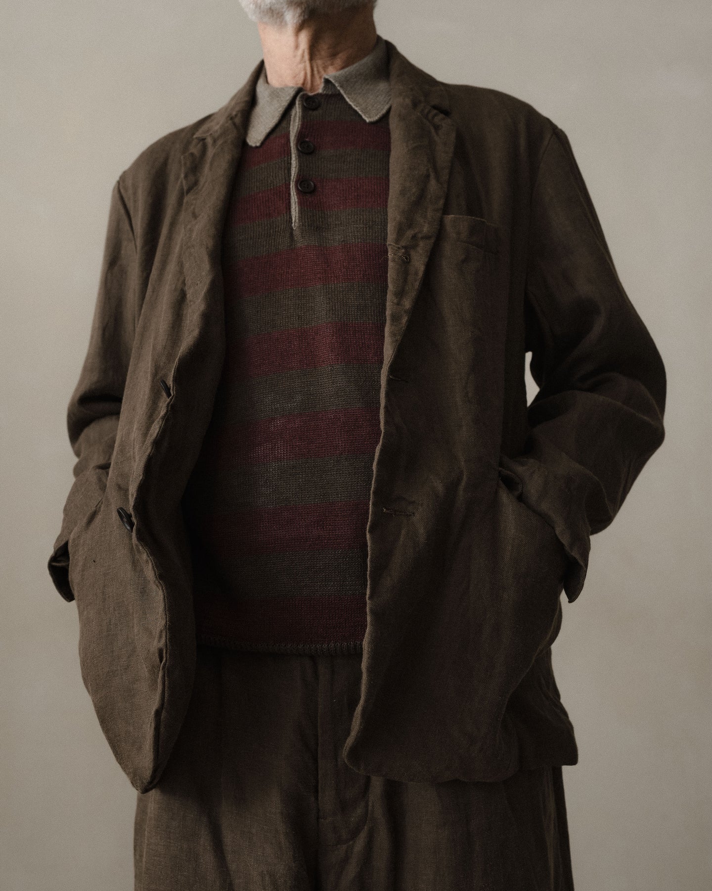 A moderately tailored, lightly structured blazer with notched lapel, single vent, welt pockets, two interior patch pockets, functional three button cuffs, hidden fourth button top closure/convertible collar and corozo buttons. Jackets come with additional seam allowance to accommodate some tailoring needs. Fully lined.