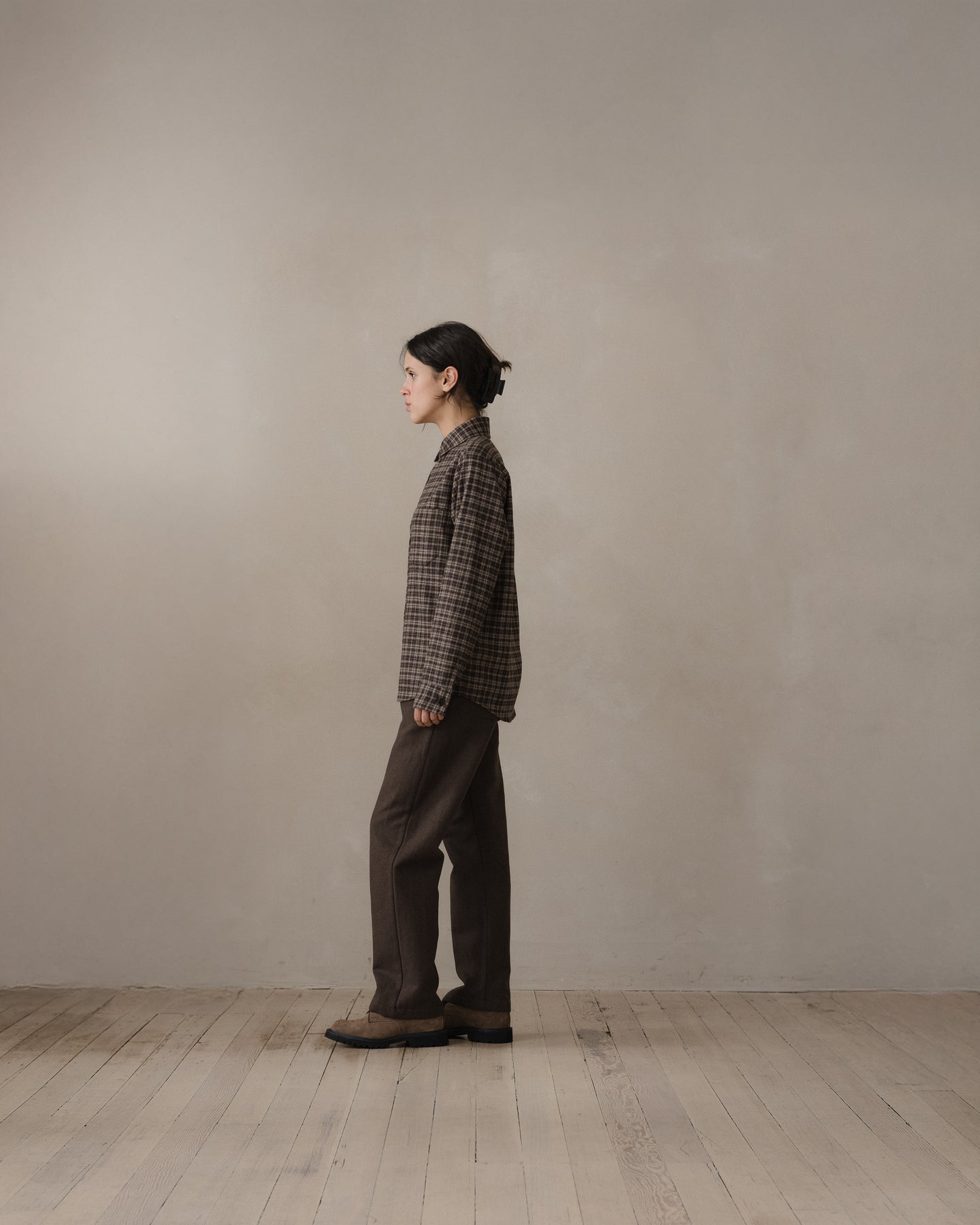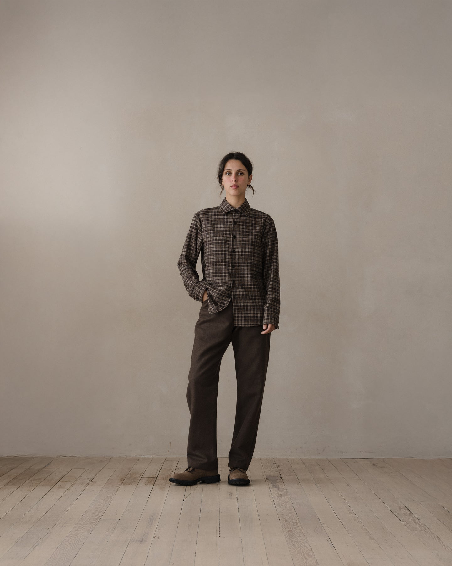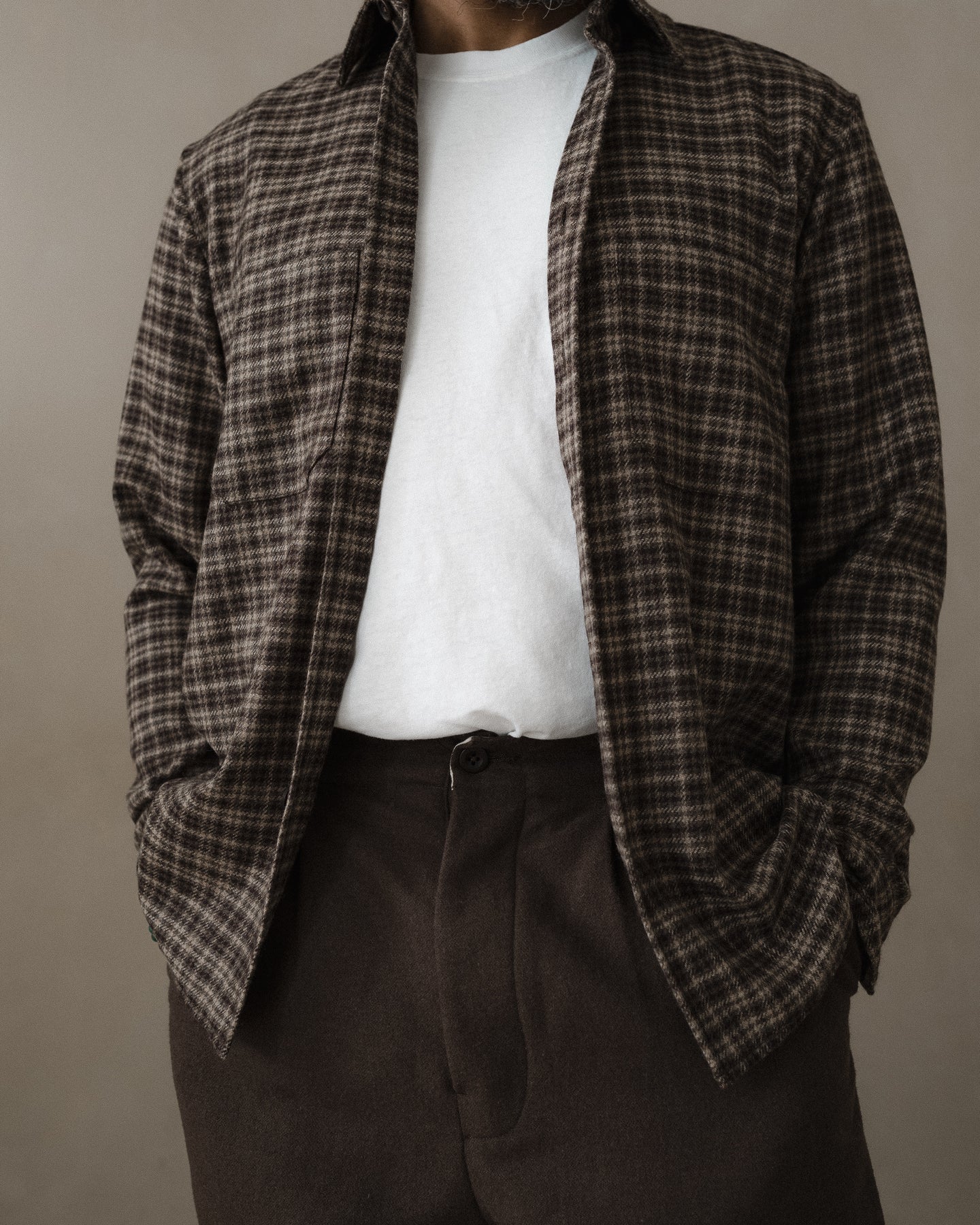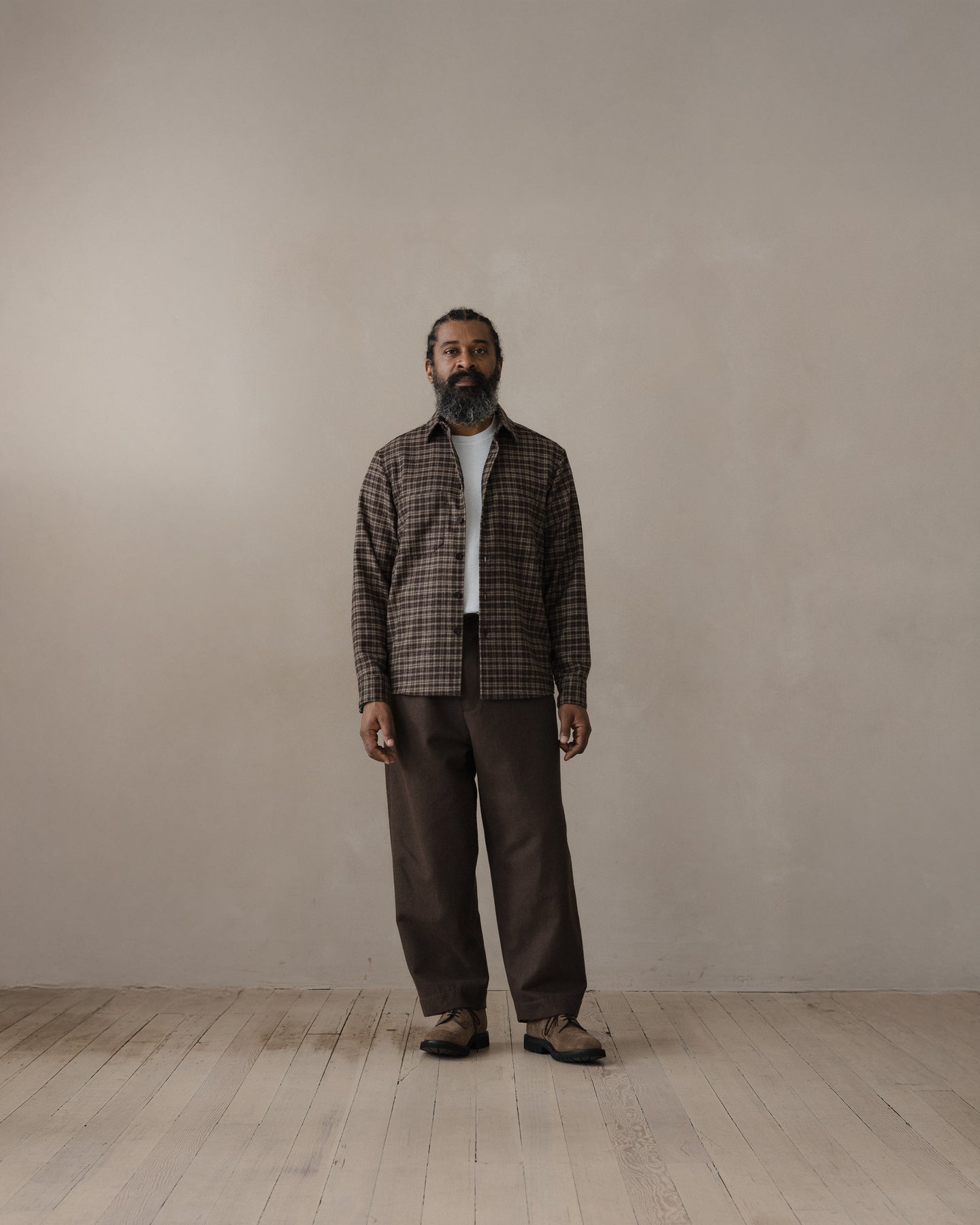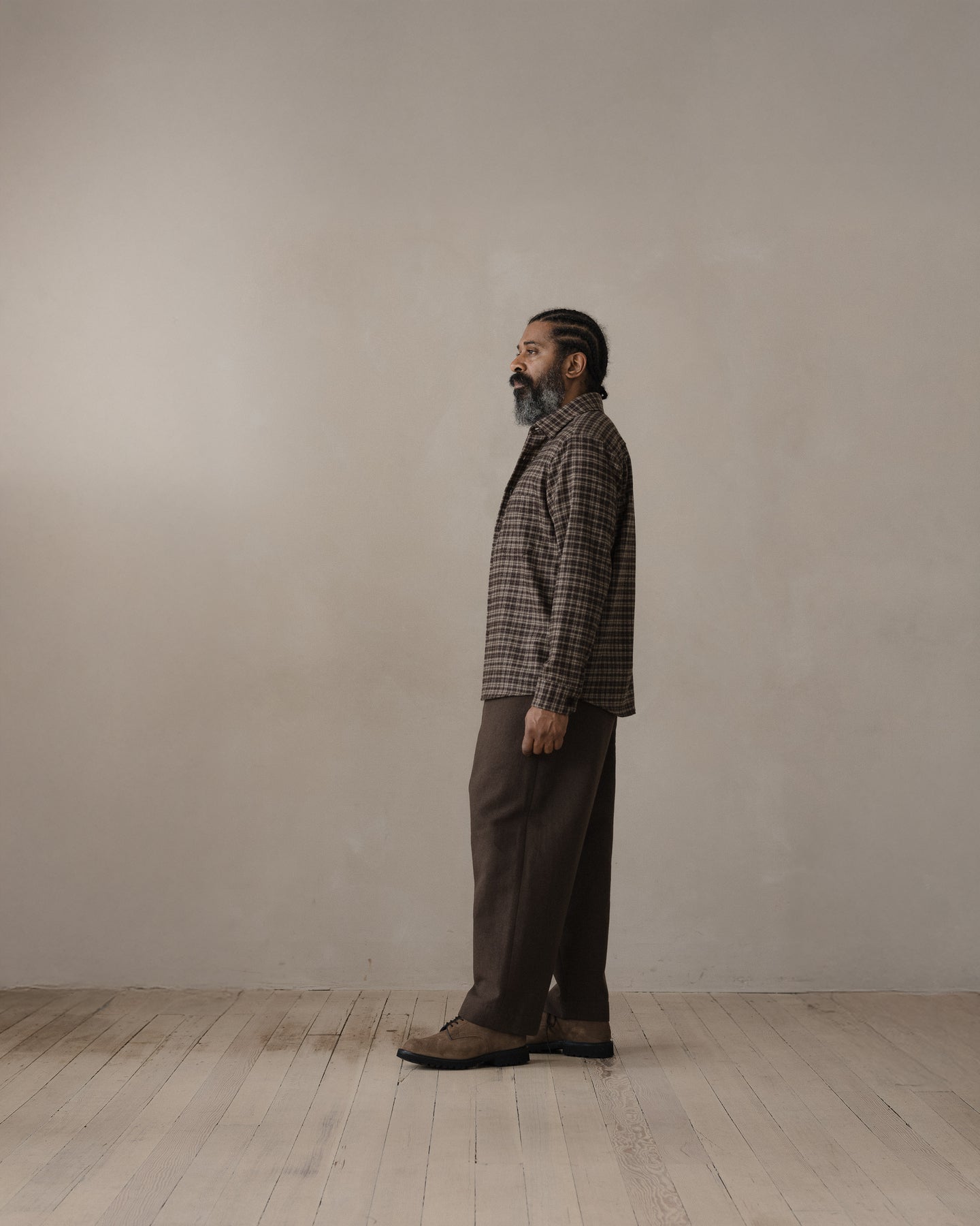 A four color yarned dyed all wool check cloth woven in County Donegal, Ireland by Magee - one of the few remaining authentic tweed mills. This lighter weight plain weave cloth features a slightly brushed finish for a supremely soft hand.
