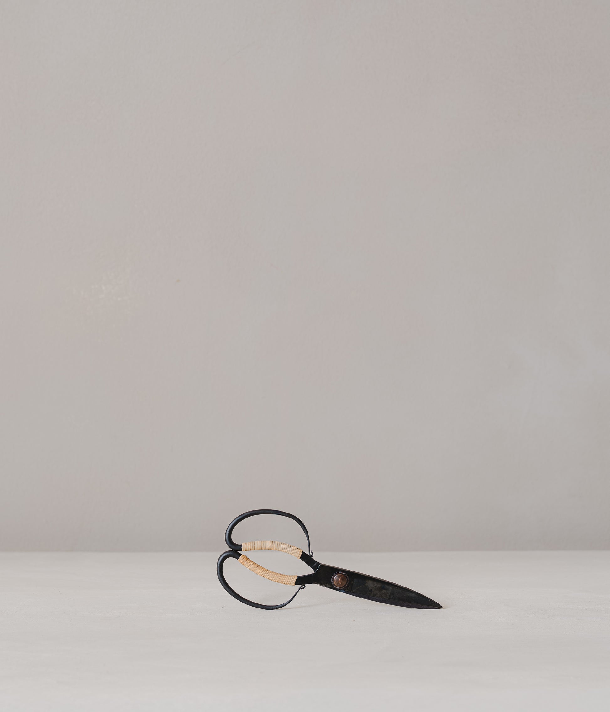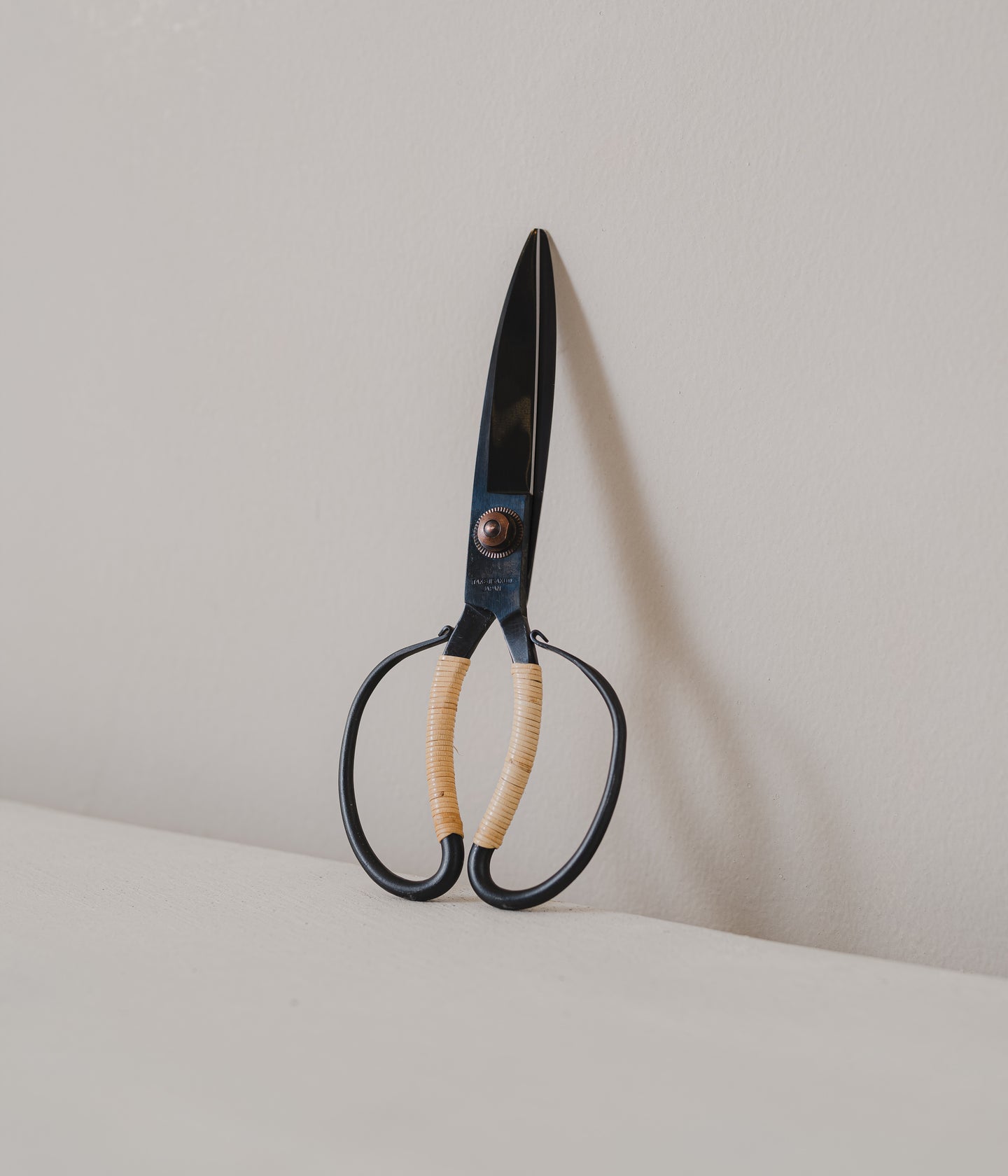 Everyday shears with rattan wrapped handles, made by a fourth generation scissor maker based in Ono, Japan. Led by Tajika Haruo, these sturdy handcrafted scissors have been forged, tempered, shaped and sharpened by a father and son team, using traditional methods of ironworks.