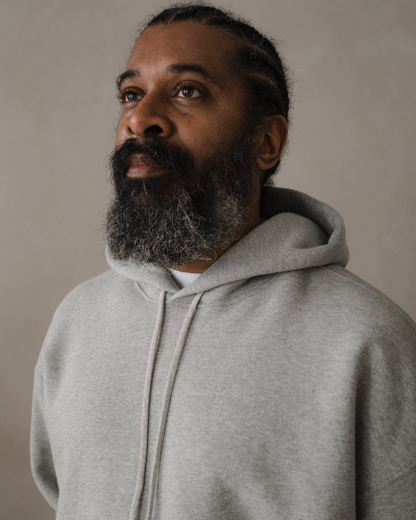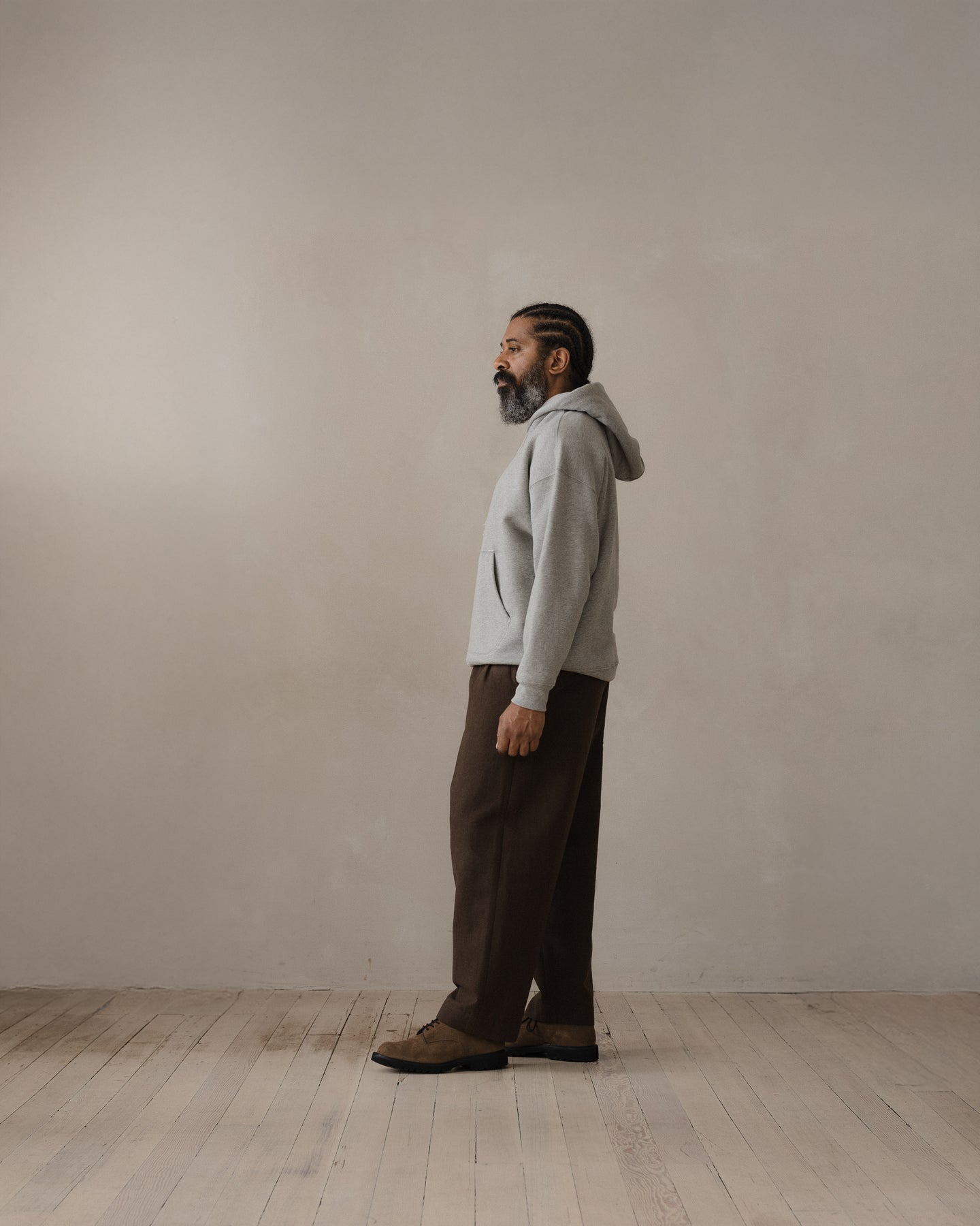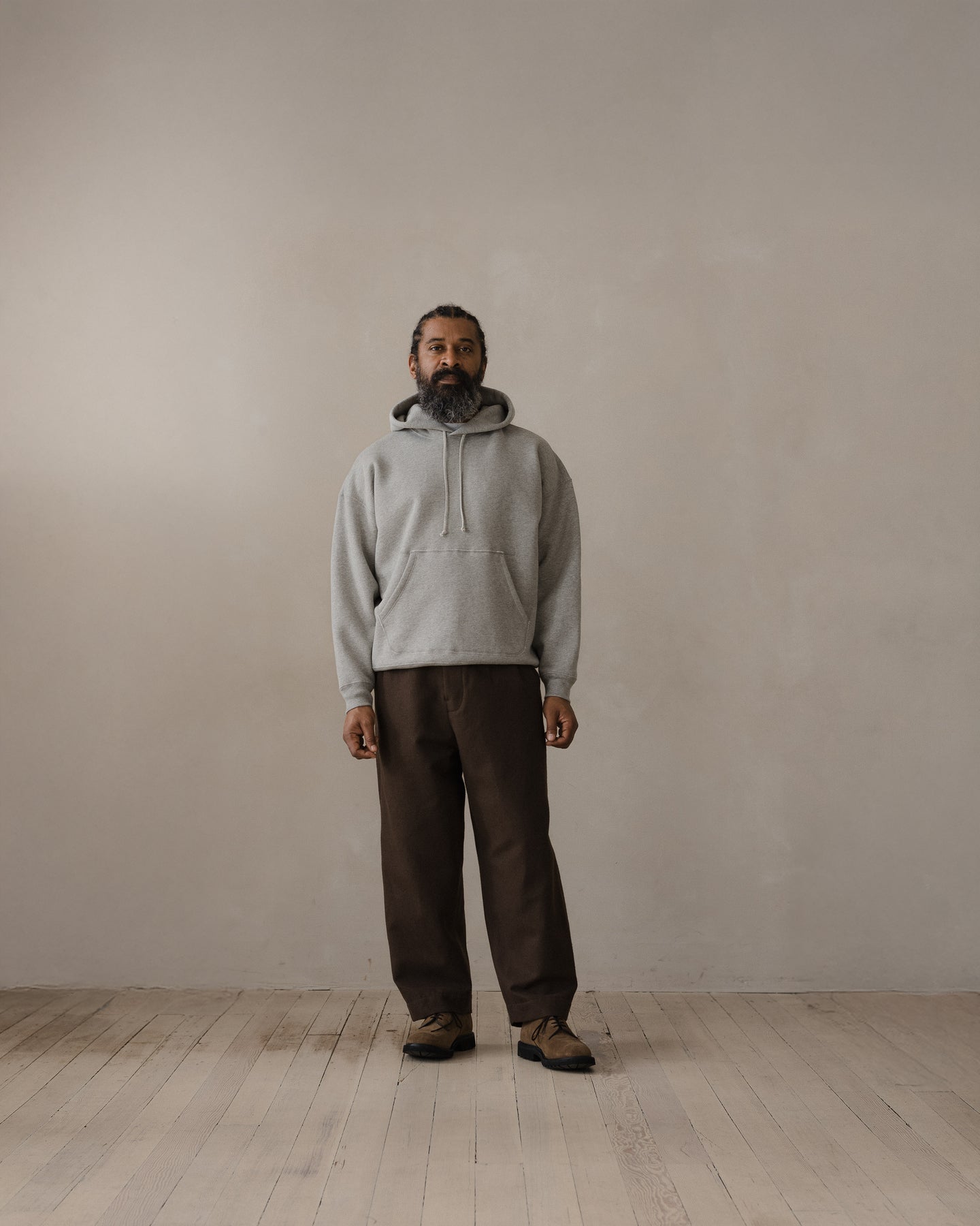 Hooded sweatshirt with a relaxed fit, dropped shoulder seam, ribbed cuff and hem. Made in California in collaboration with Lady White Company.