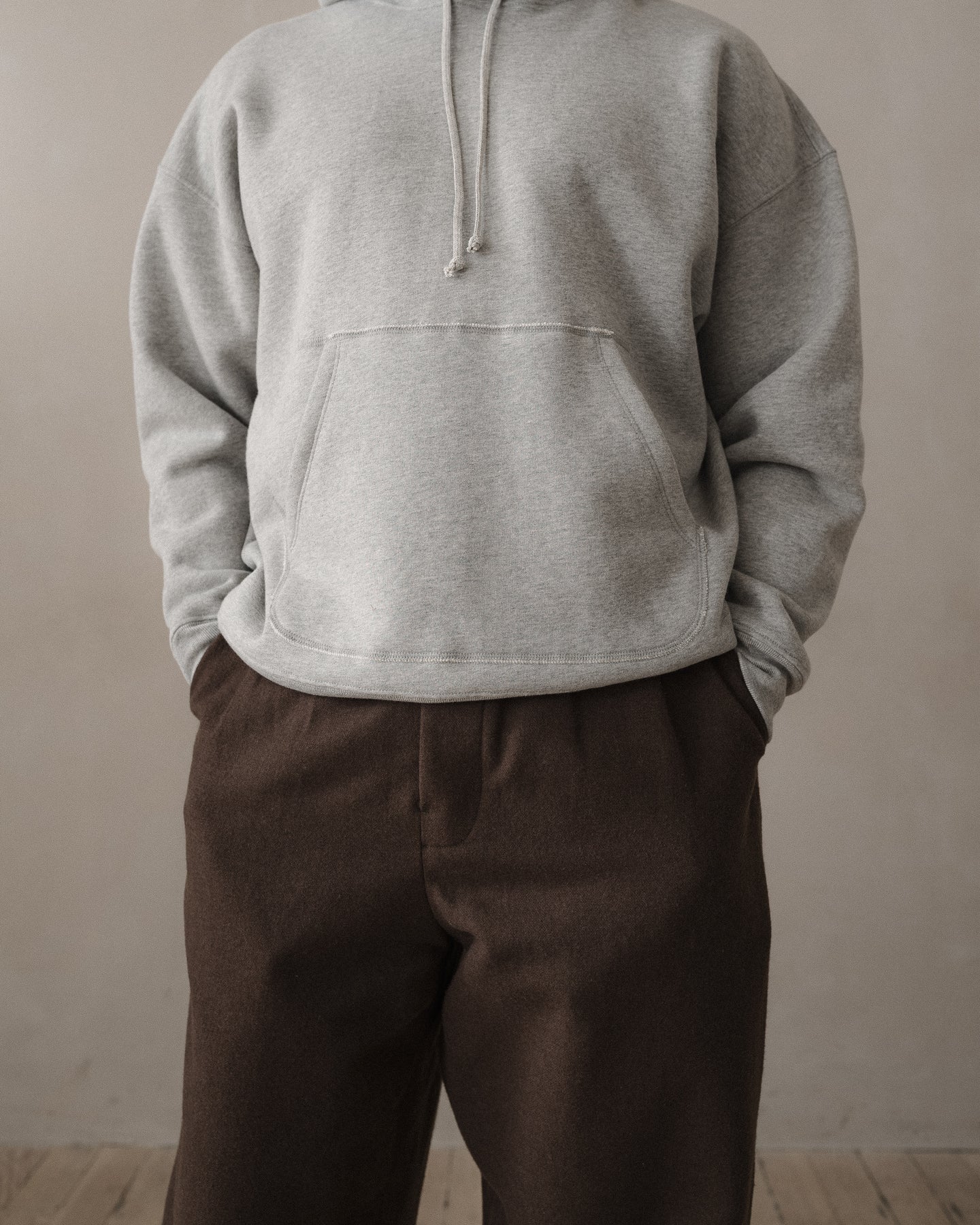 Upon request from MAIDENS SHOP in Tokyo for both LW-C and our 10 year anniversary - we decided to cut a few of our collaborative styles in the signature LW-C heather grey custom milled 100% cotton fleece. Knit in Los Angeles, CA.