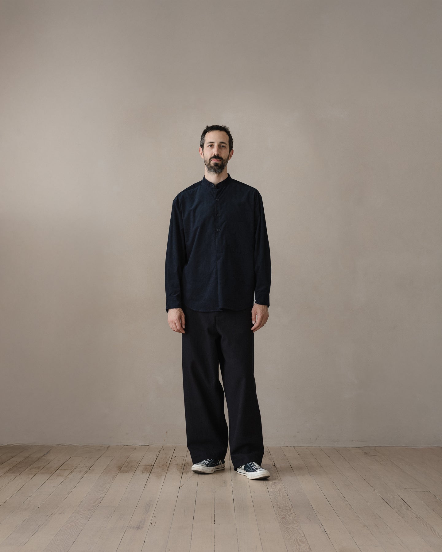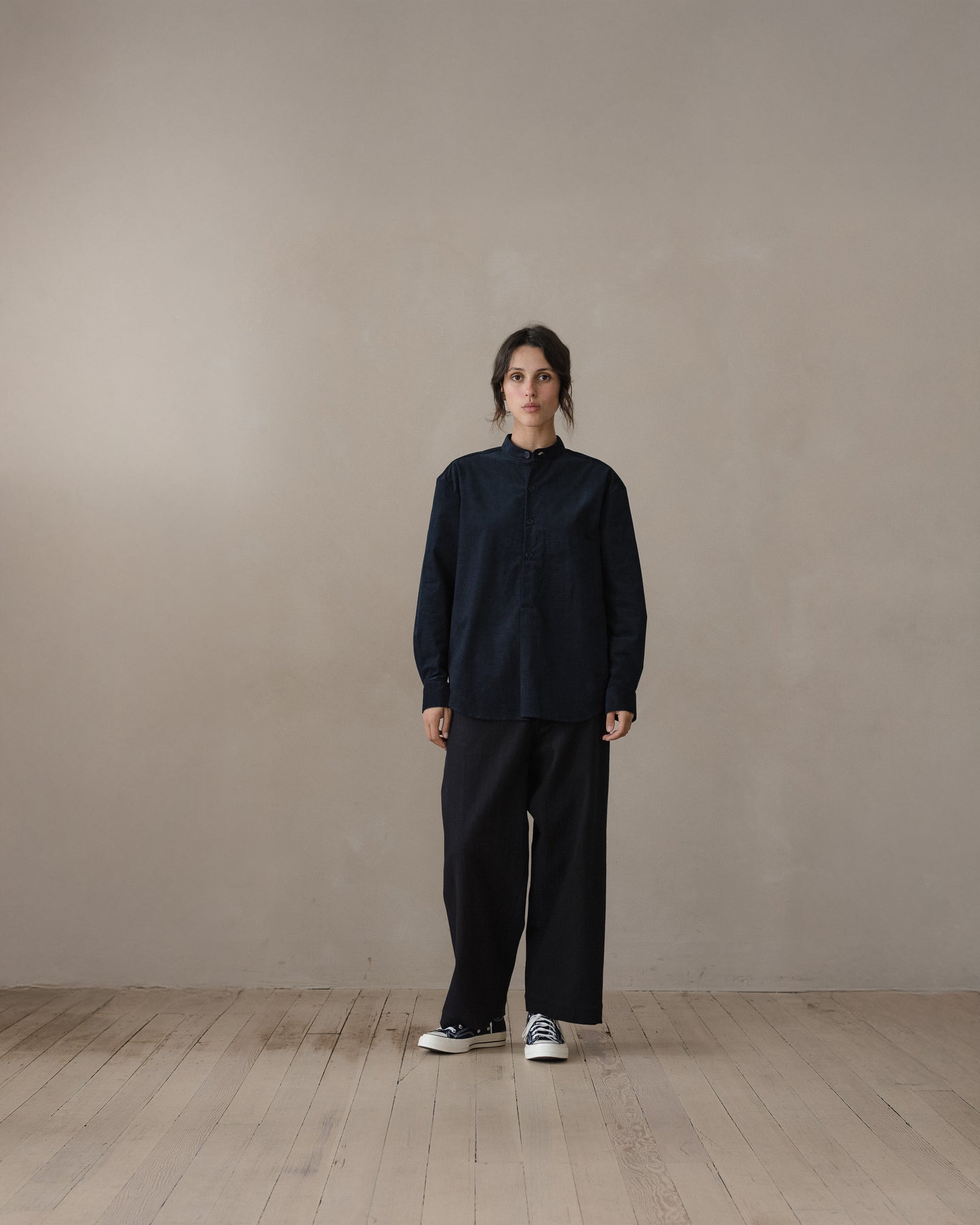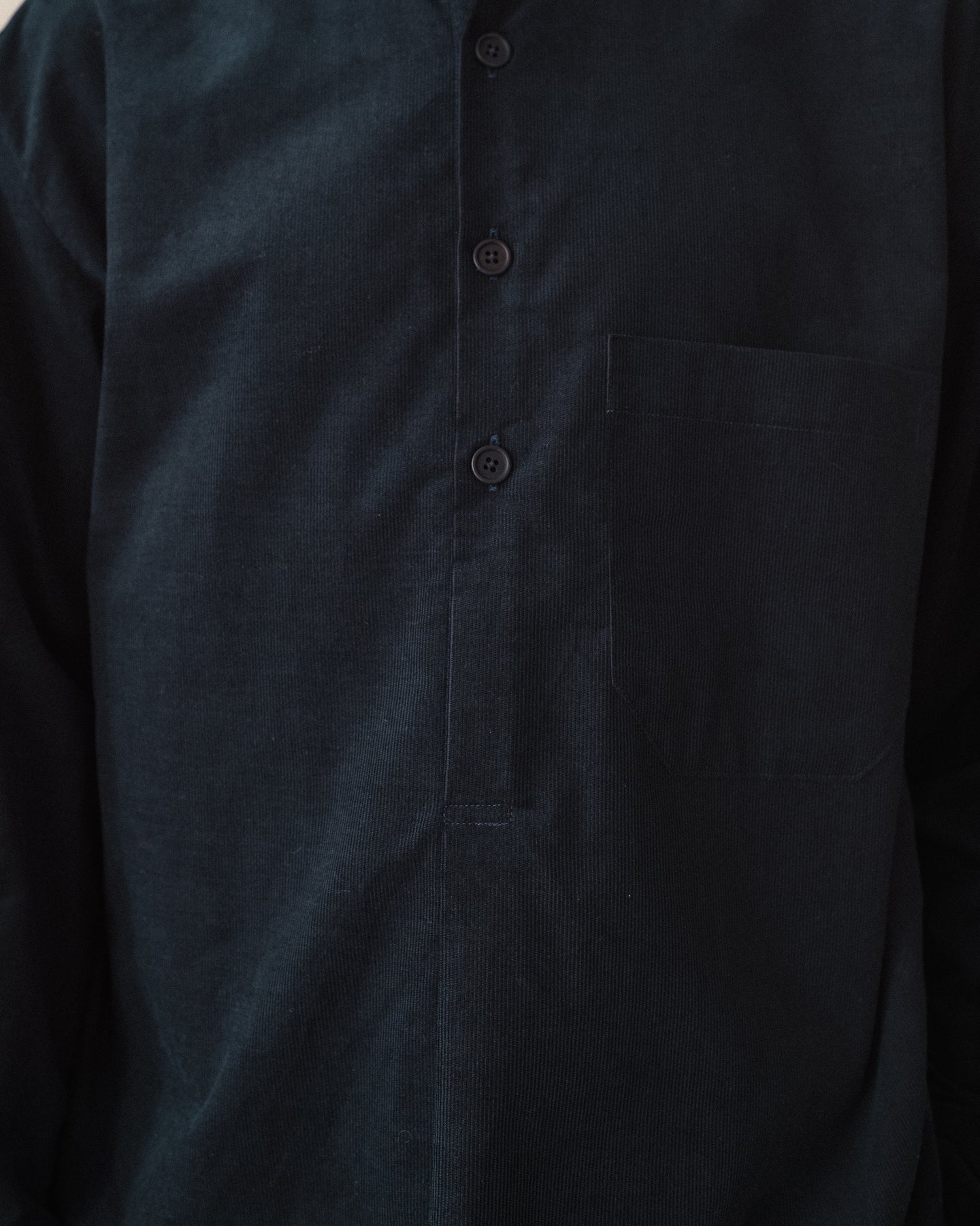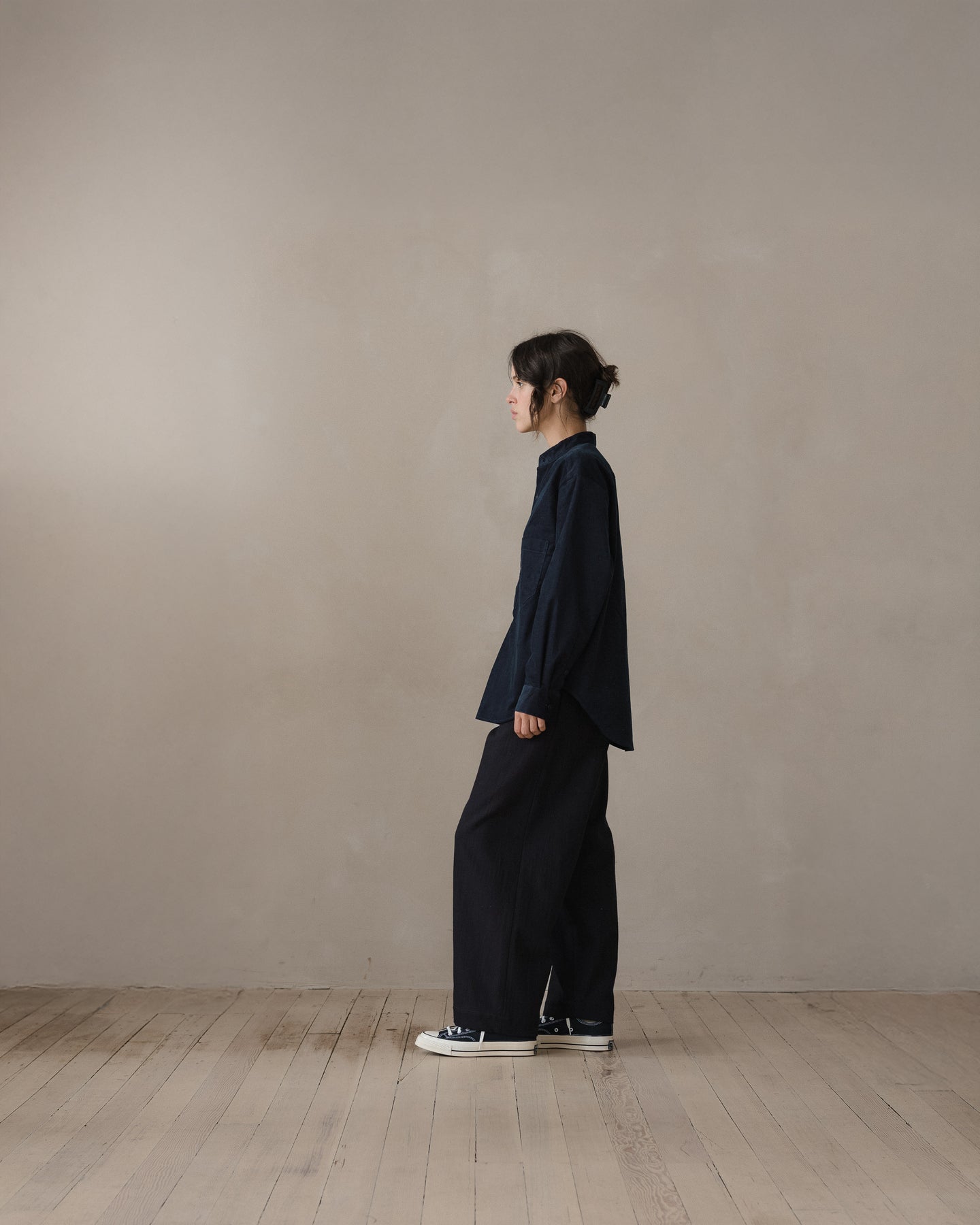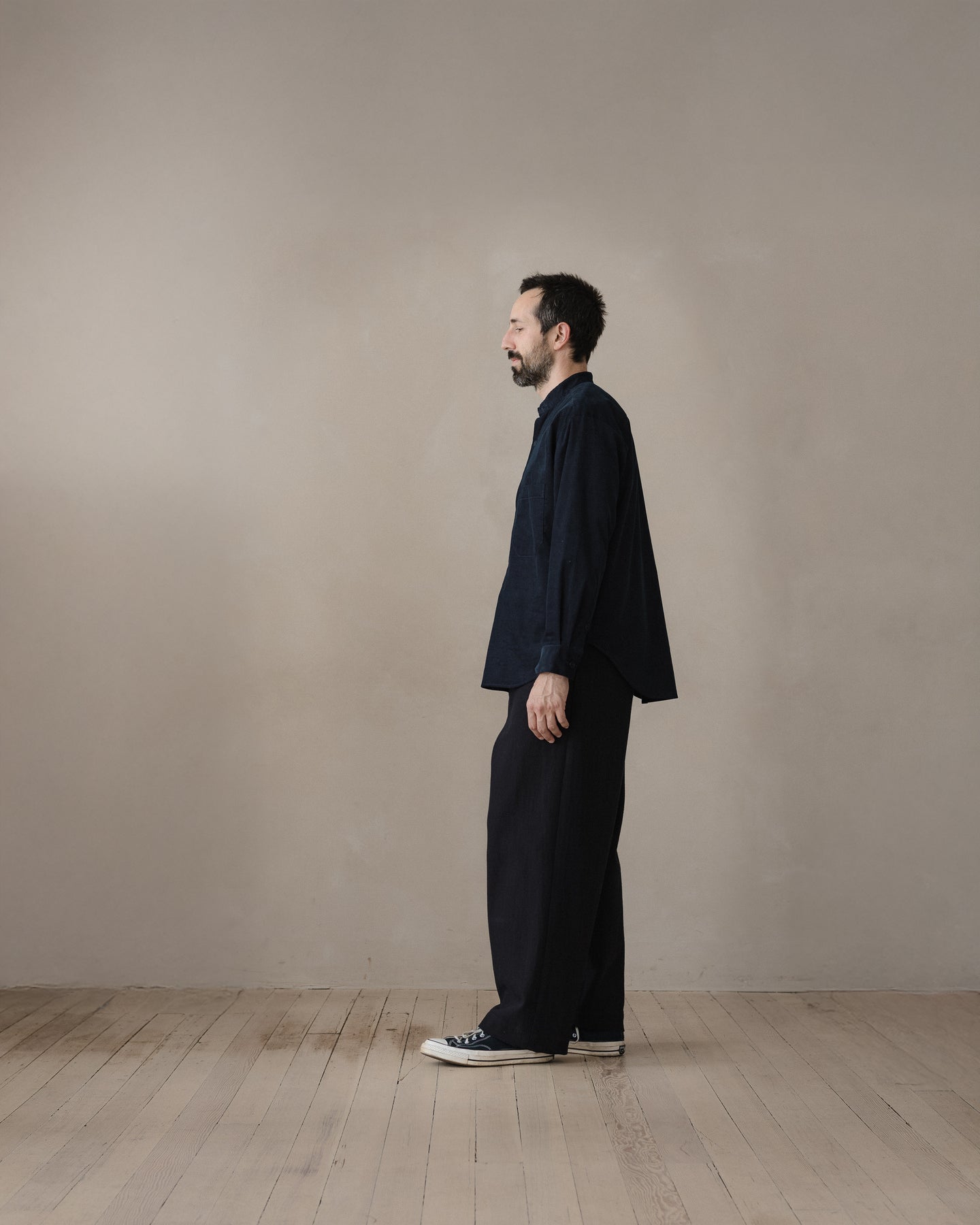 A looser fitting buttondown with large dropped single chest pocket, corozo buttons, french seams, squared cuffs, curved hem and ‘invisible’ placket. This shirt is based on the same fit of the Big Shirt - cut more relaxed in the chest with a dropped shoulder and a slightly longer body compared to the Two Pocket Shirt.