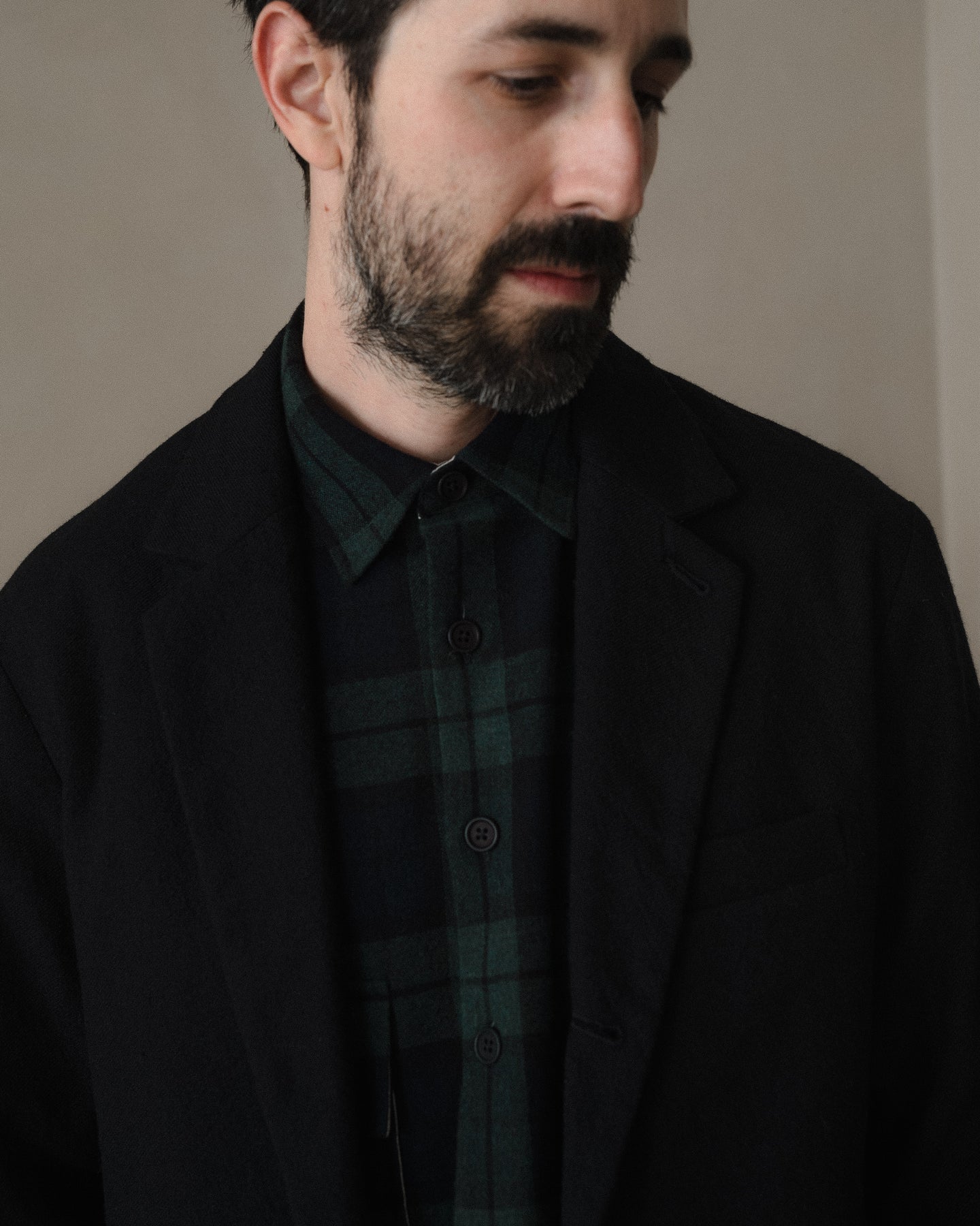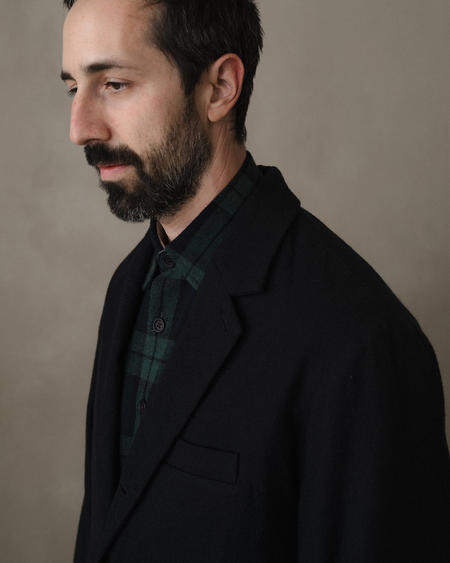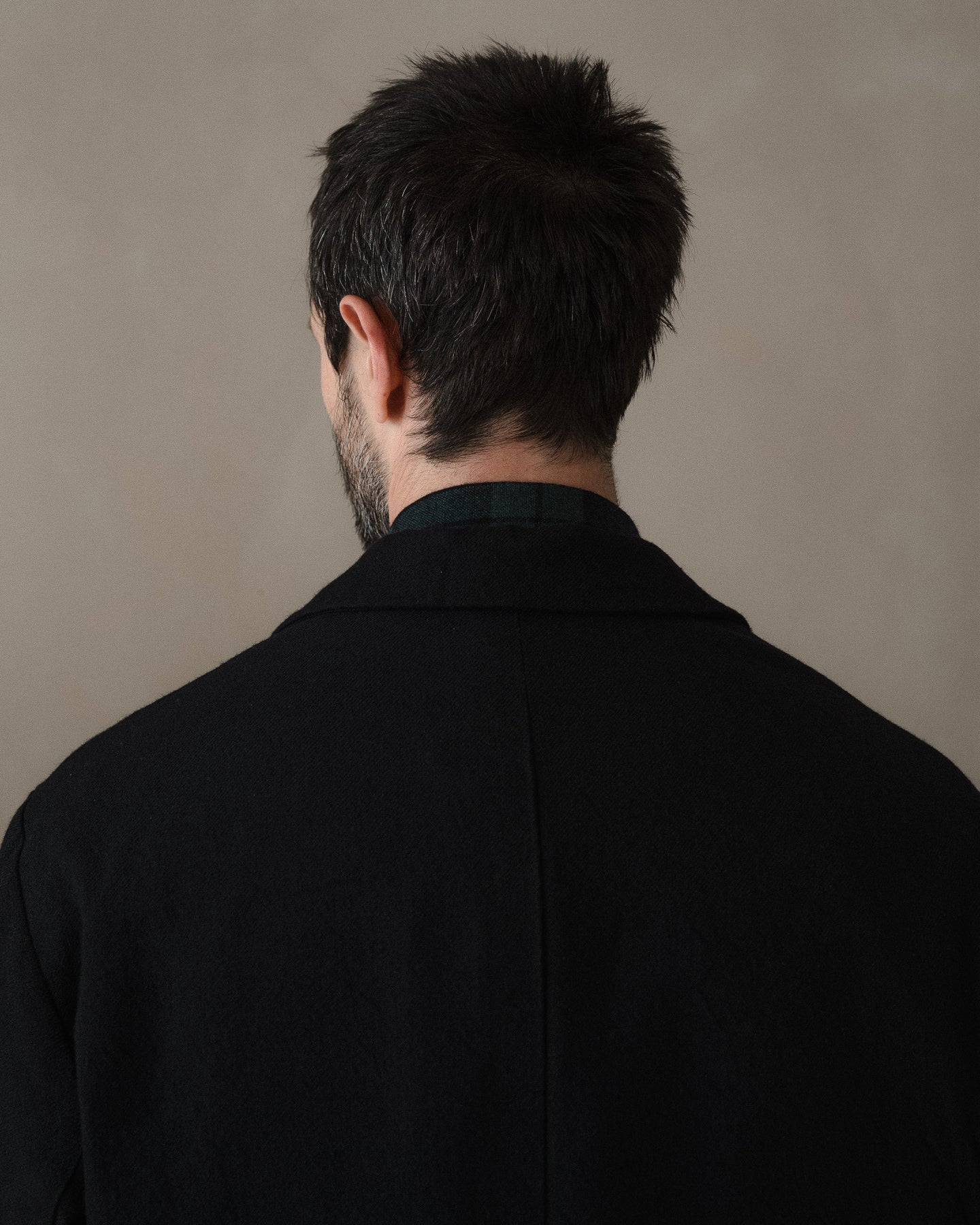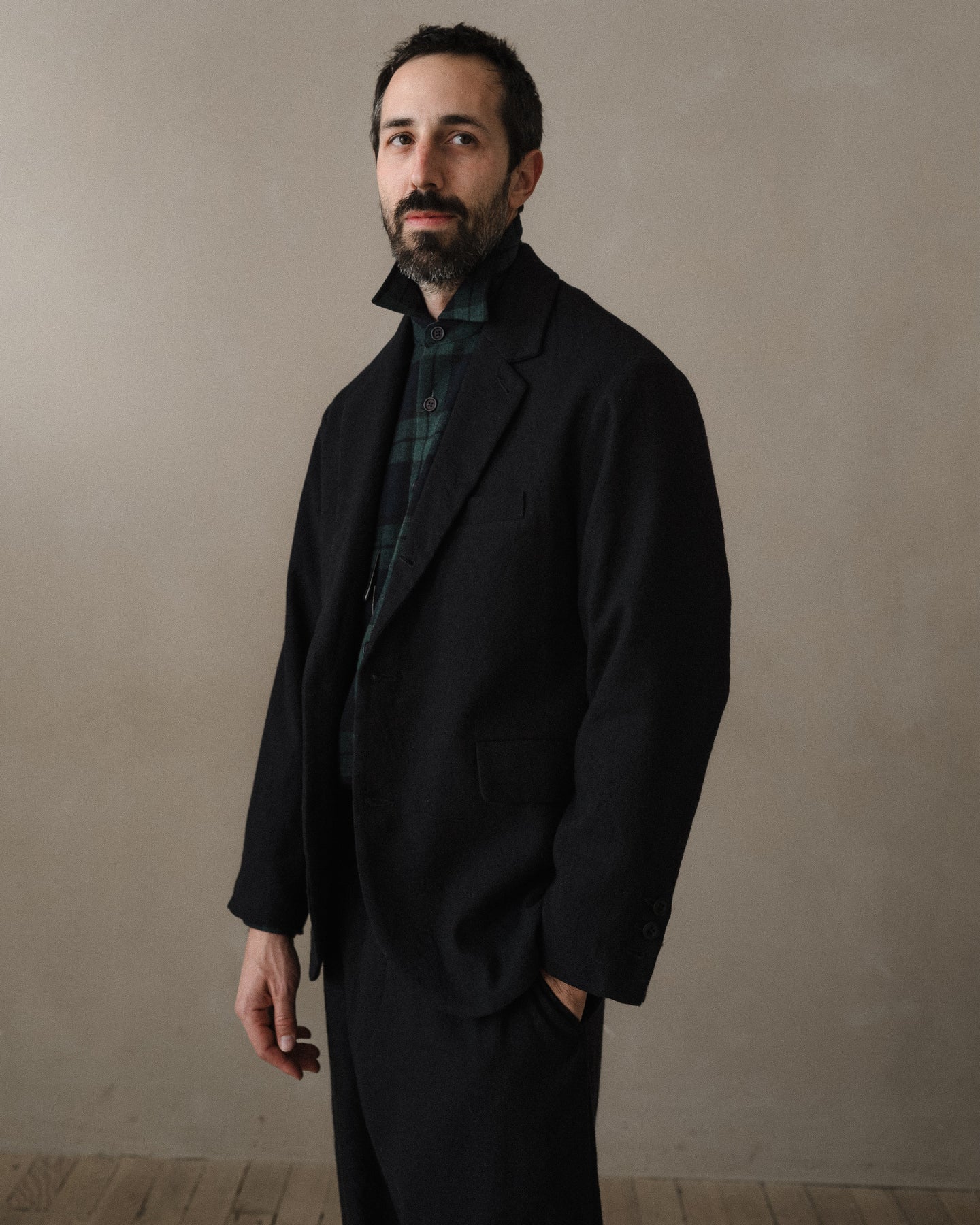 A moderately tailored, lightly structured blazer with notched lapel, single vent, welt pockets, two interior patch pockets, functional three button cuffs, hidden fourth button top closure/convertible collar and corozo buttons. Jackets come with additional seam allowance to accommodate some tailoring needs. Fully lined.