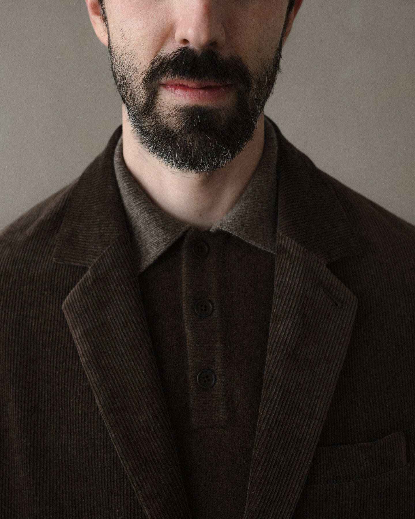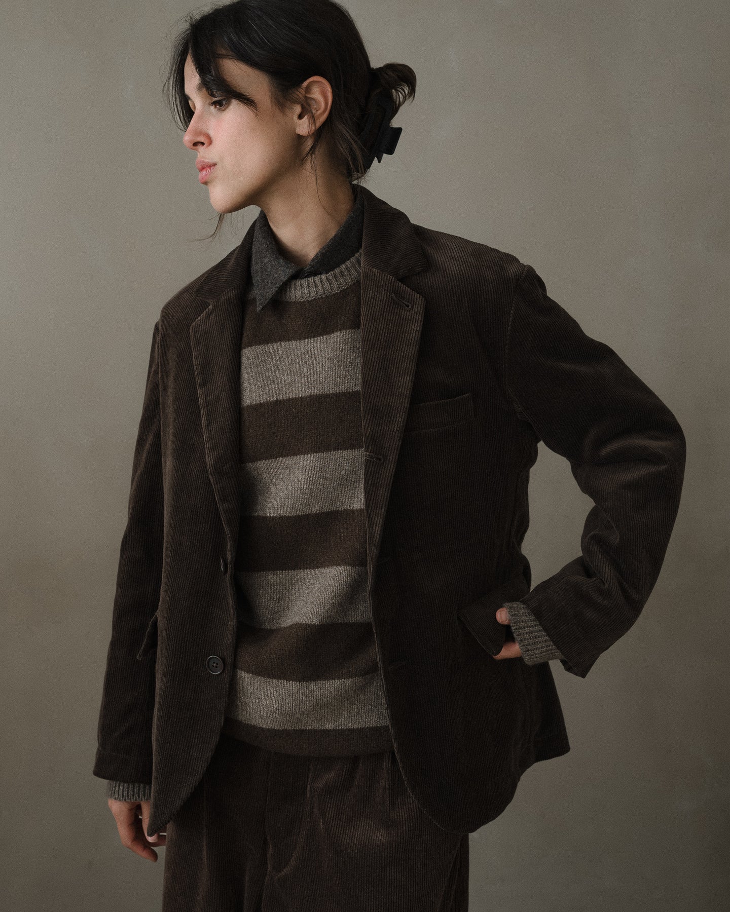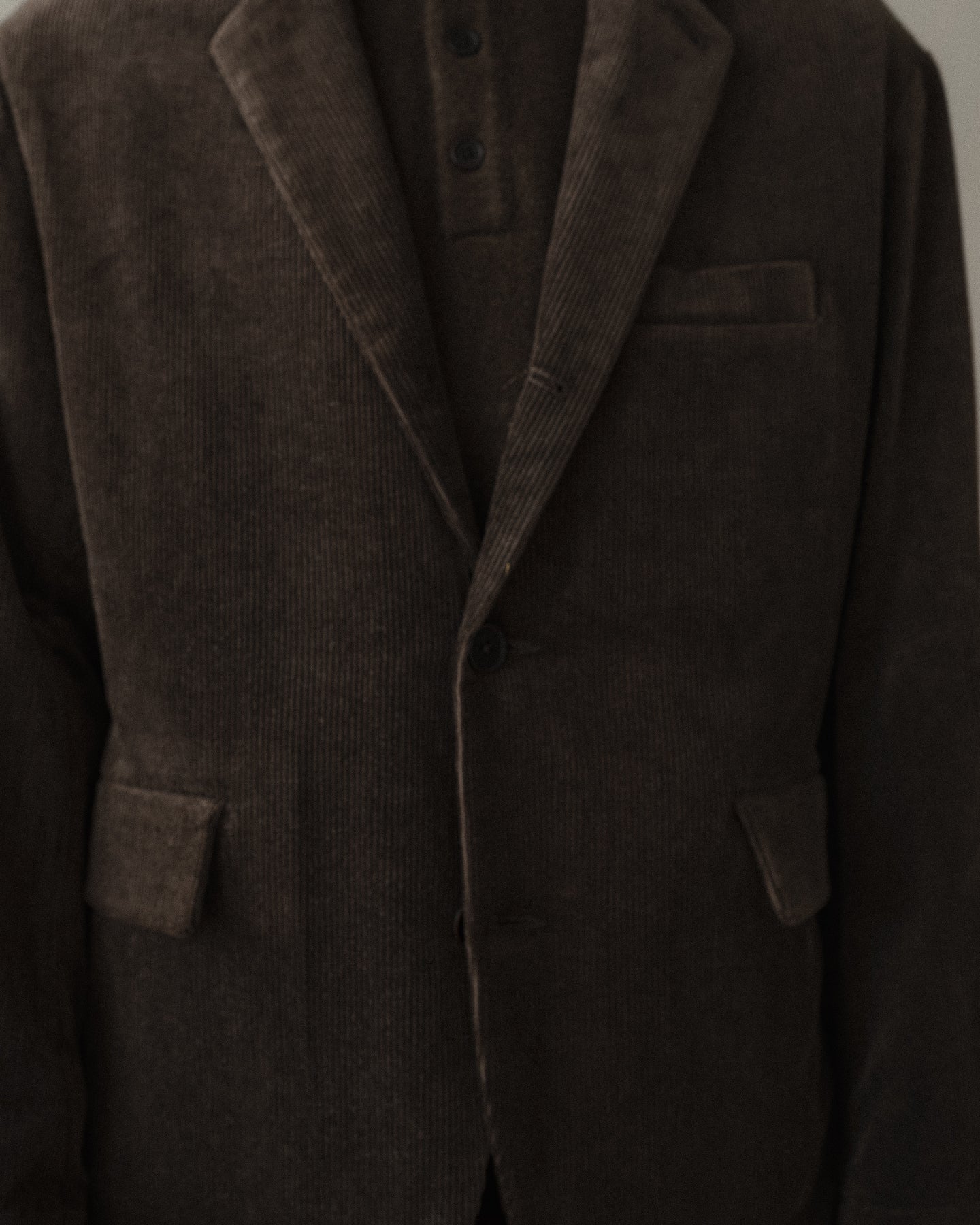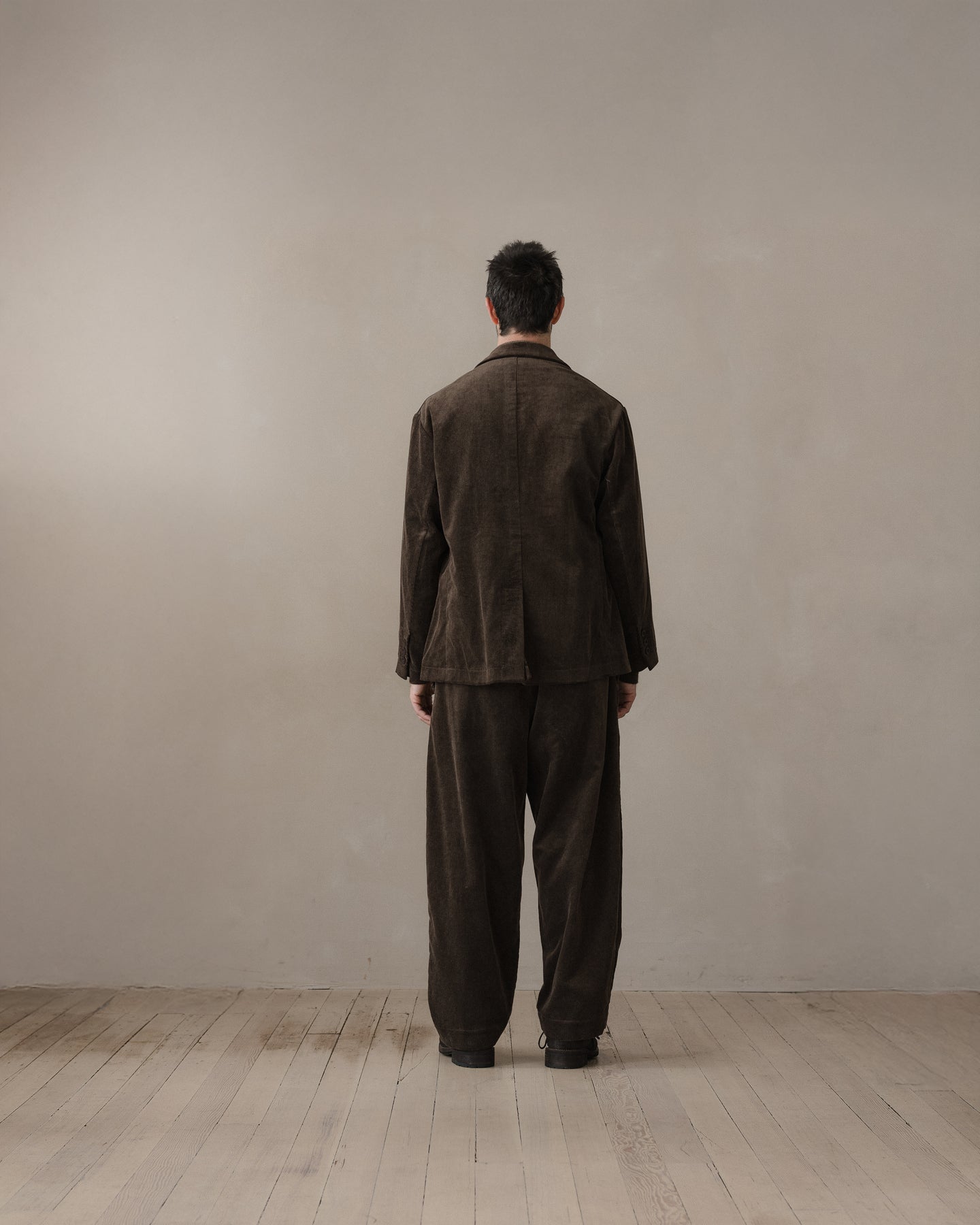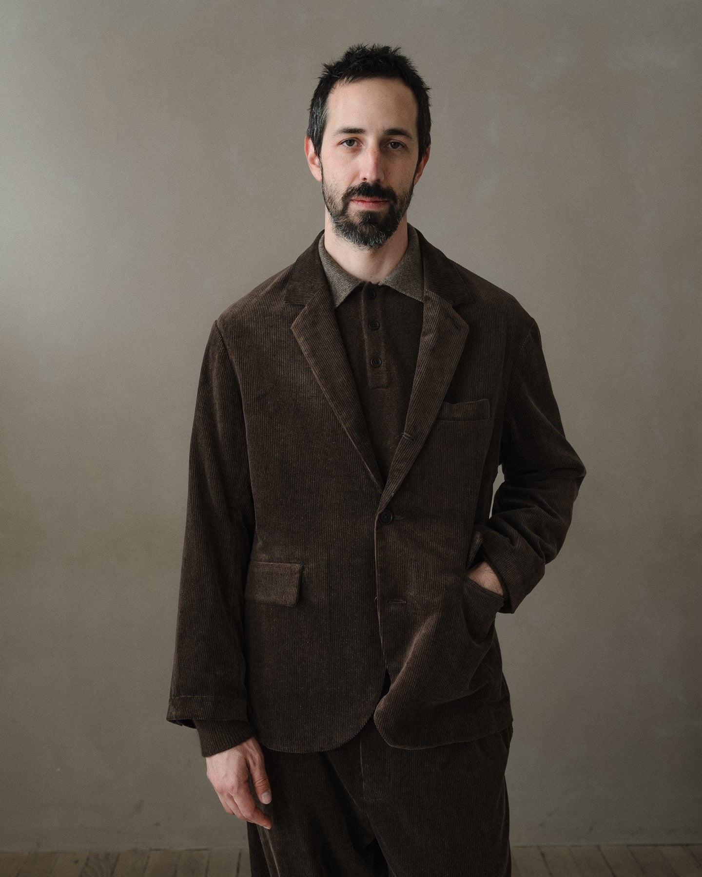 A medium weight corduroy blending cotton and linen to achieve a slightly dry hand and more irregular texture. Woven in Wakayama, Japan - this pile weave was then cut in Shizuoka by one of the last remaining corduroy cutters in all of Japan. The cloth was piece dyed using a blend of natural sumi ink and Oeko-Tex certified dye in Okayama. The dyeing process also contributes to the dry touch that will continue to soften overtime with repeated washing and wear.