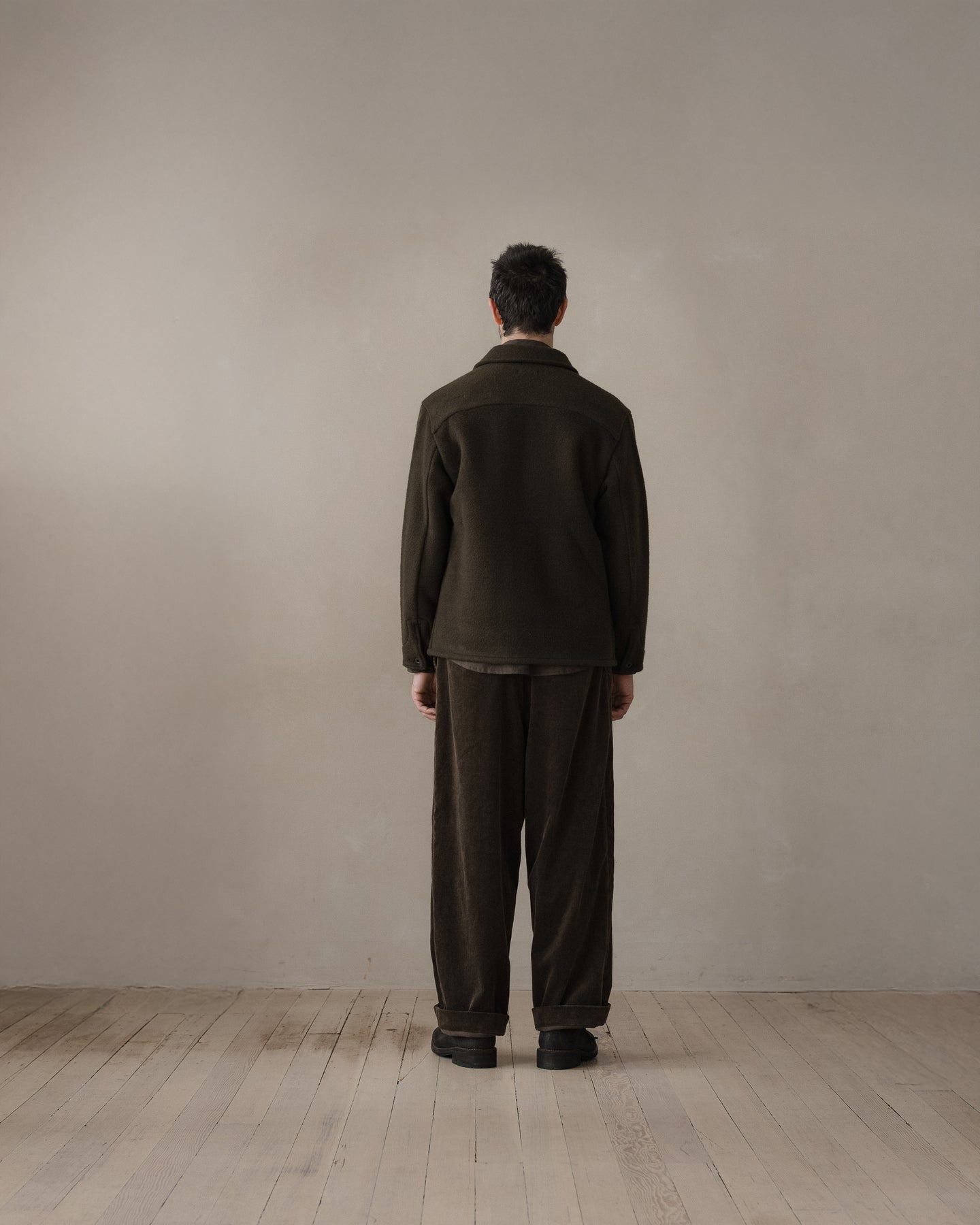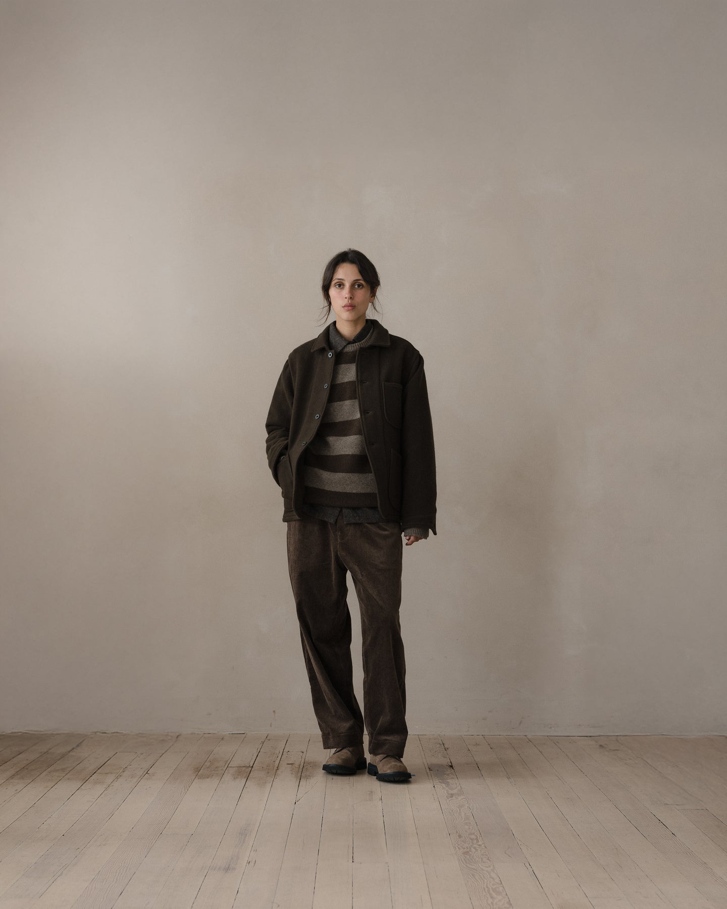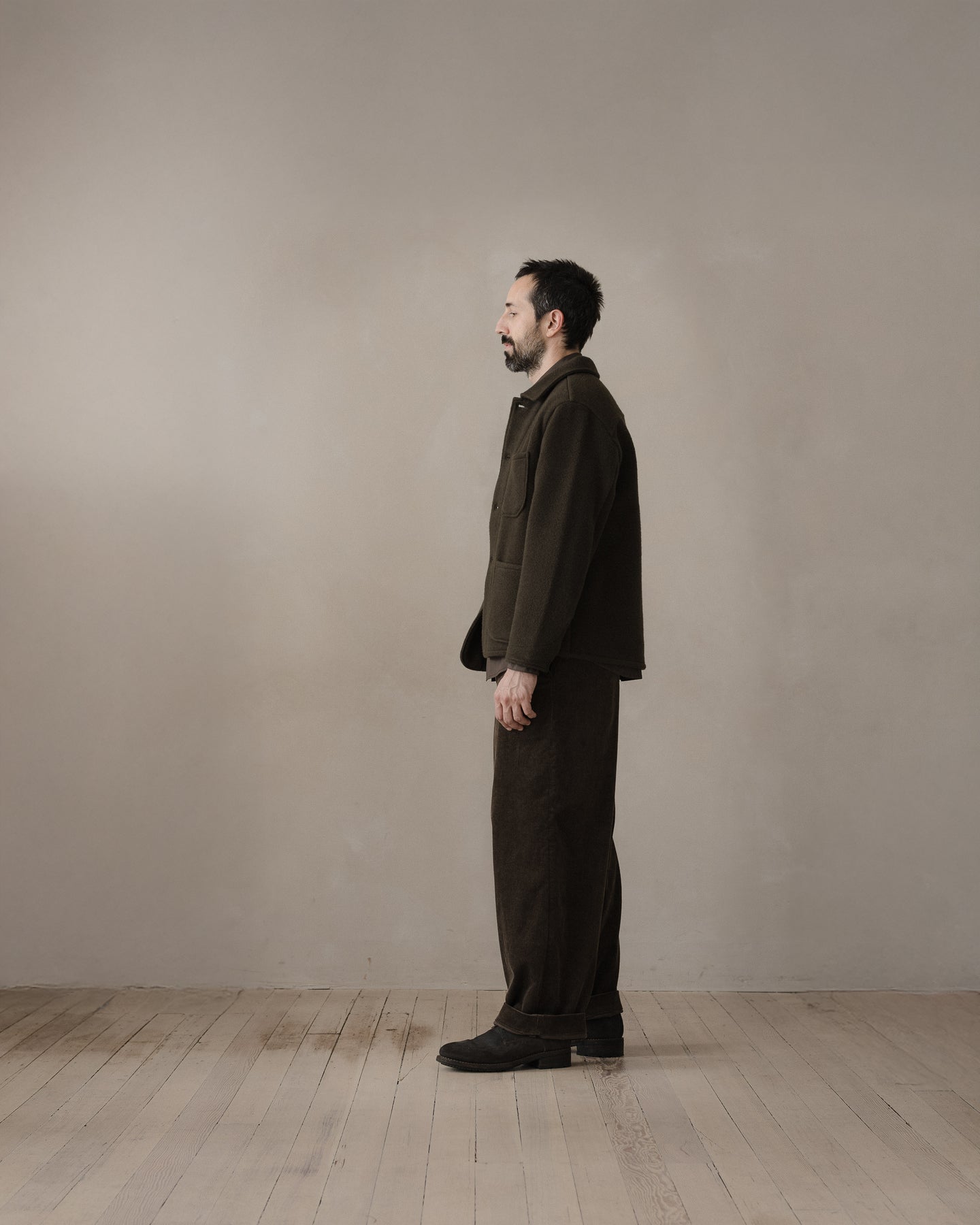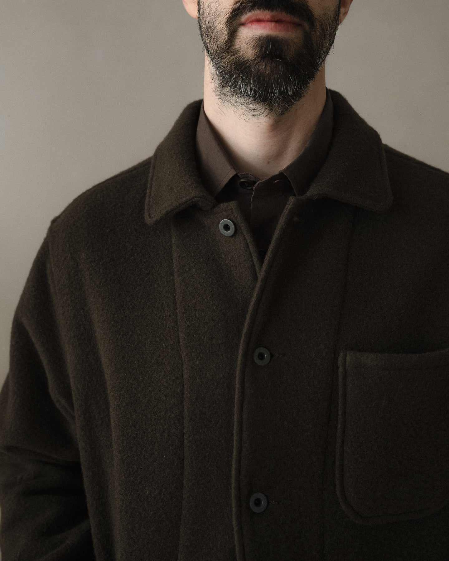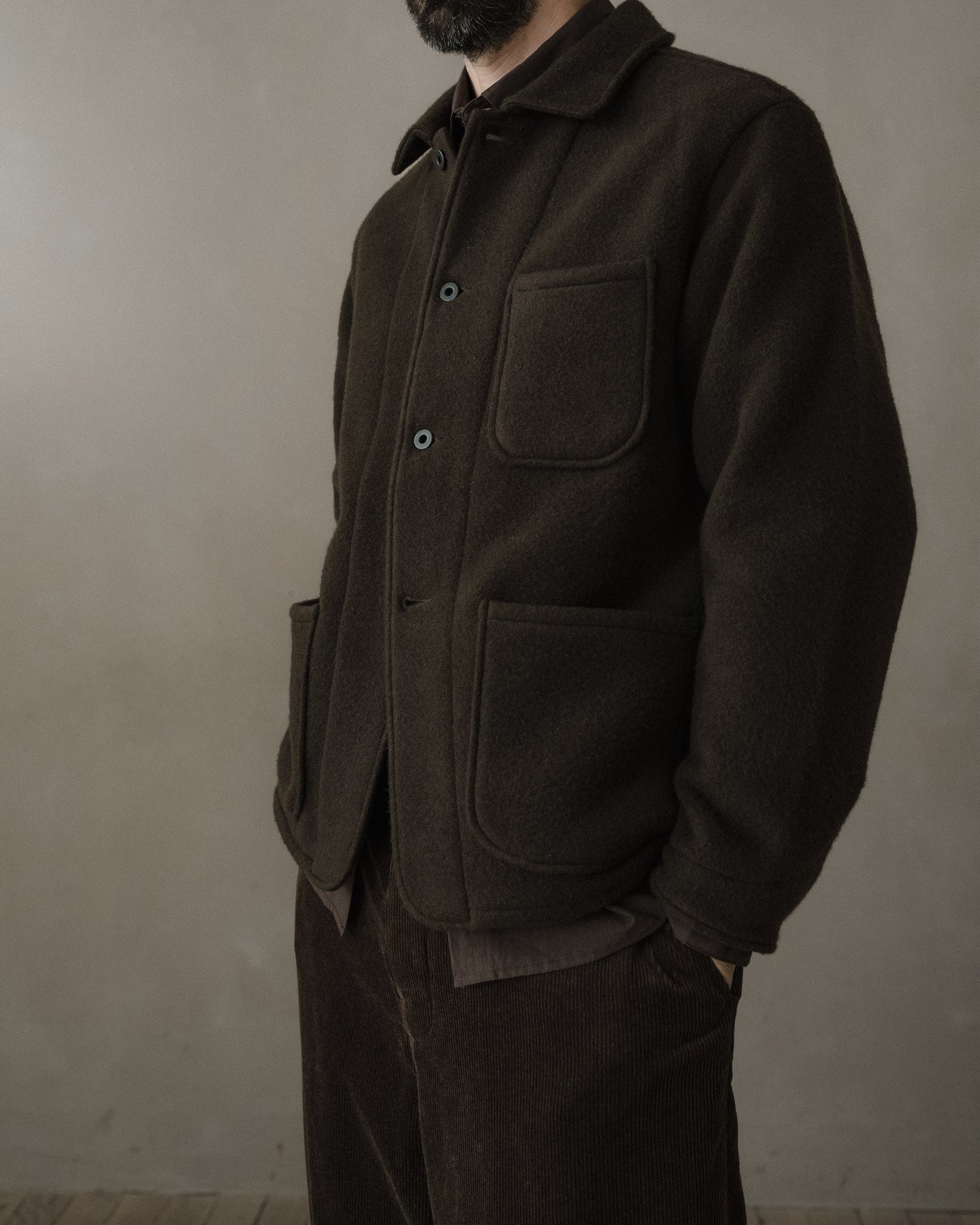 Originally developed around 30 years ago by a legendary textile designer based in Ichinomiya, Japan. This thick double-weave 'blanket cloth' features a cotton core surrounded by wool that is then heavily brushed on both sides. The resulting cloth is thick yet pliable and rather unstructured, with a very soft and lofty hand. Woven in Japan.