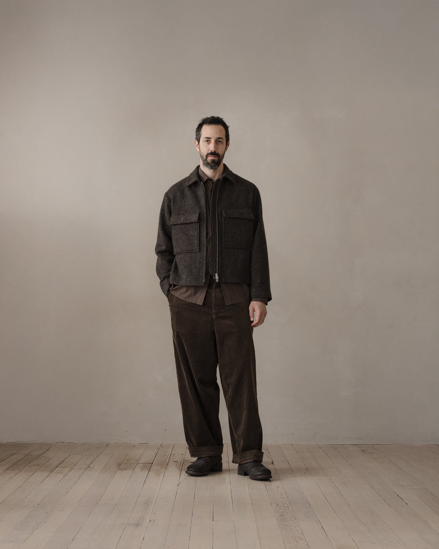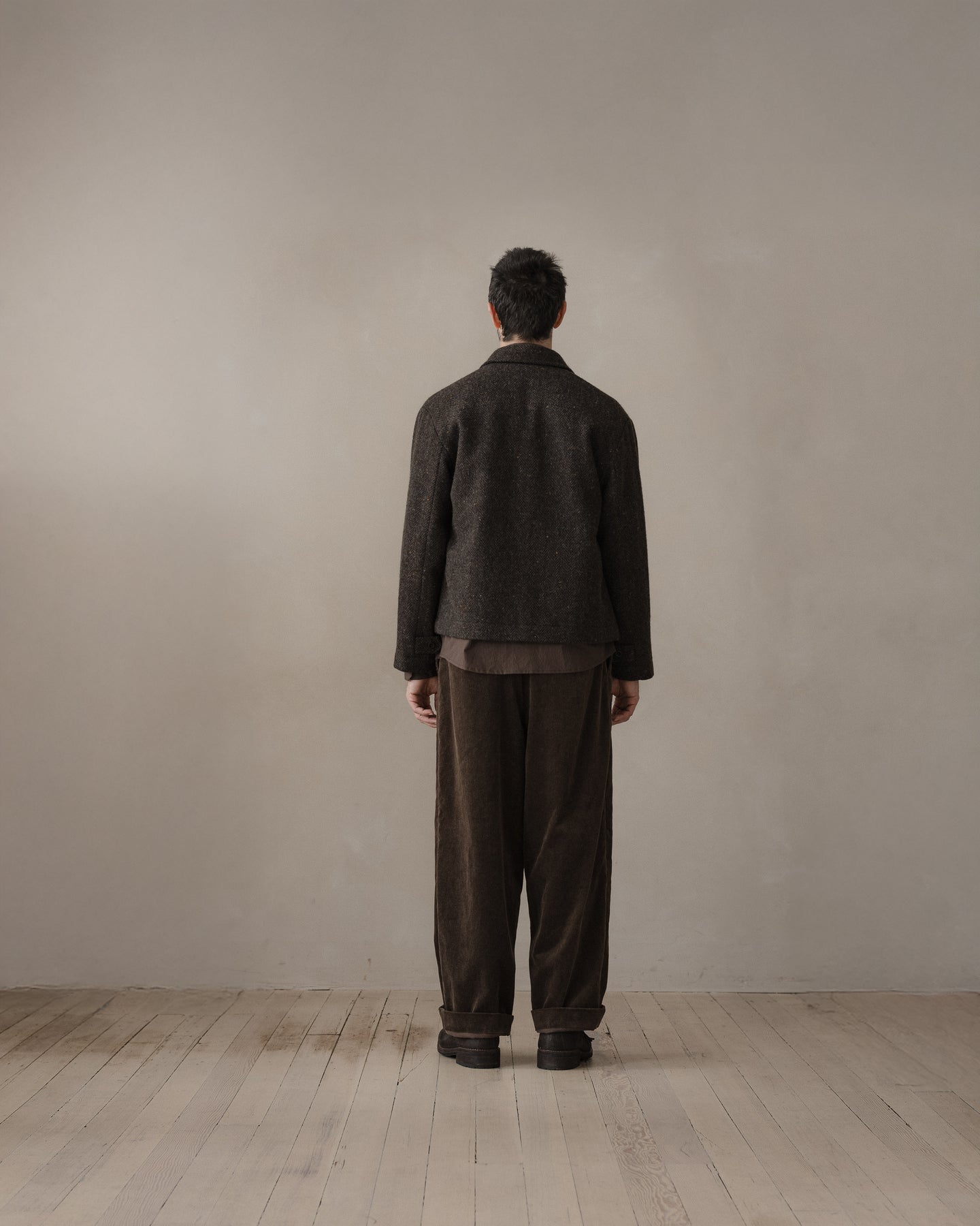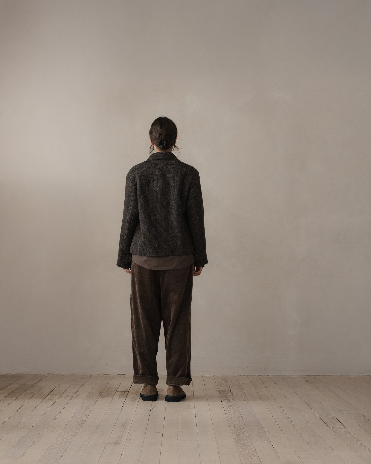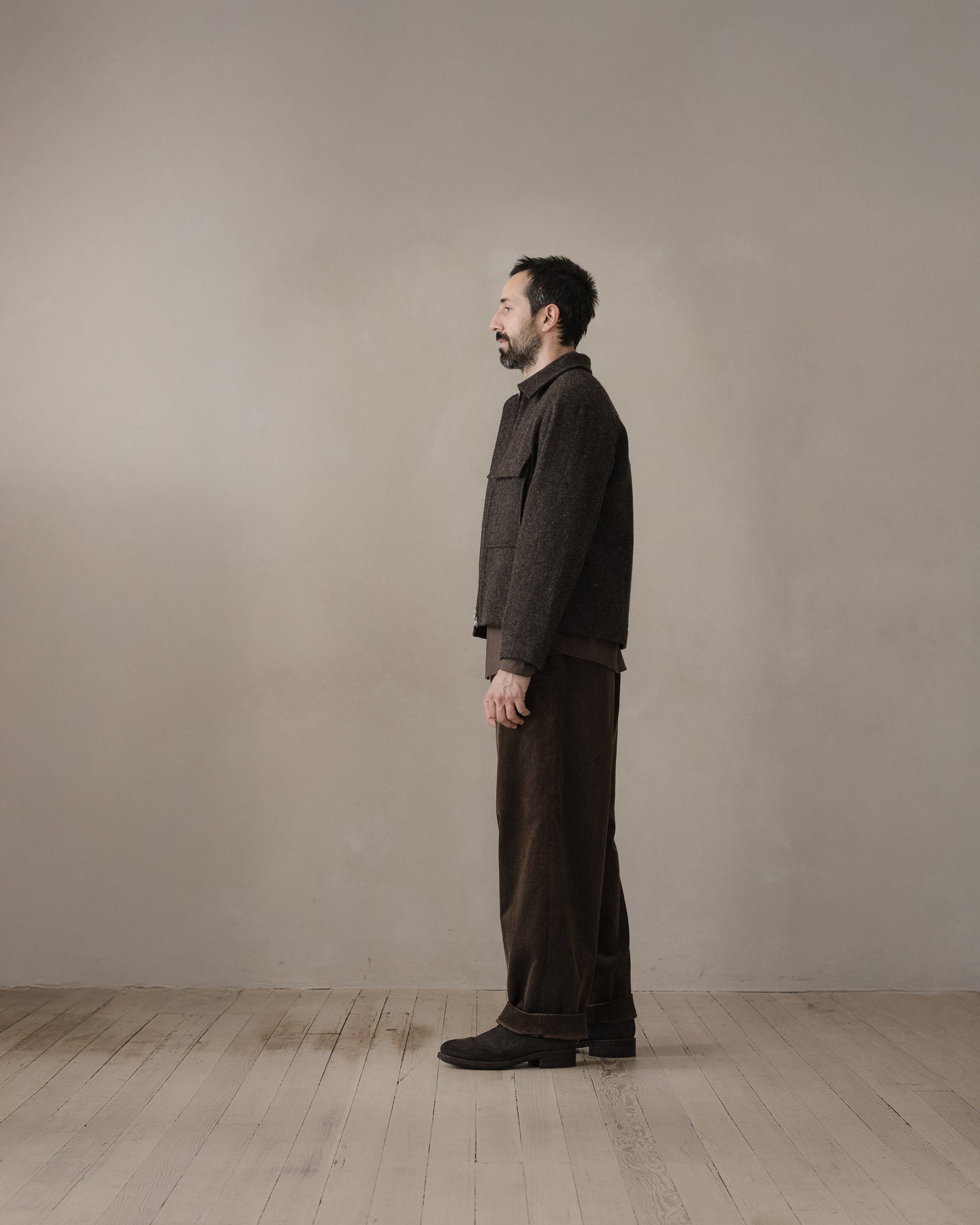 Around 12 years ago I came across a cloth woven by Magee, quite similar to this one, and it was clear that it could not be improved upon - a truly iconic cloth. There is a profound beauty in quality ingredients presented in a simple and timeless manner. A lofty all wool cloth woven in County, Donegal, Ireland by one of the few remaining authentic tweed mills. This classic herringbone pattern features a custom combination of brown and charcoal tweed woolen yarns.